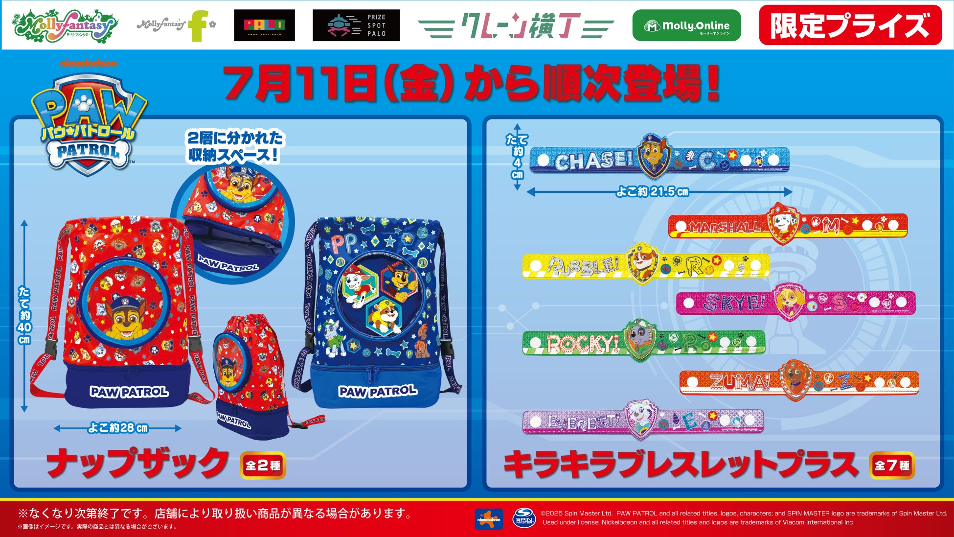 『パウ・パトロール™』限定プライズ! チェイスたちのかわいい「ナップザック」や「キラキラブレスレット」を7月11日(金)よりモーリーファンタジー・PALOにて展開開始