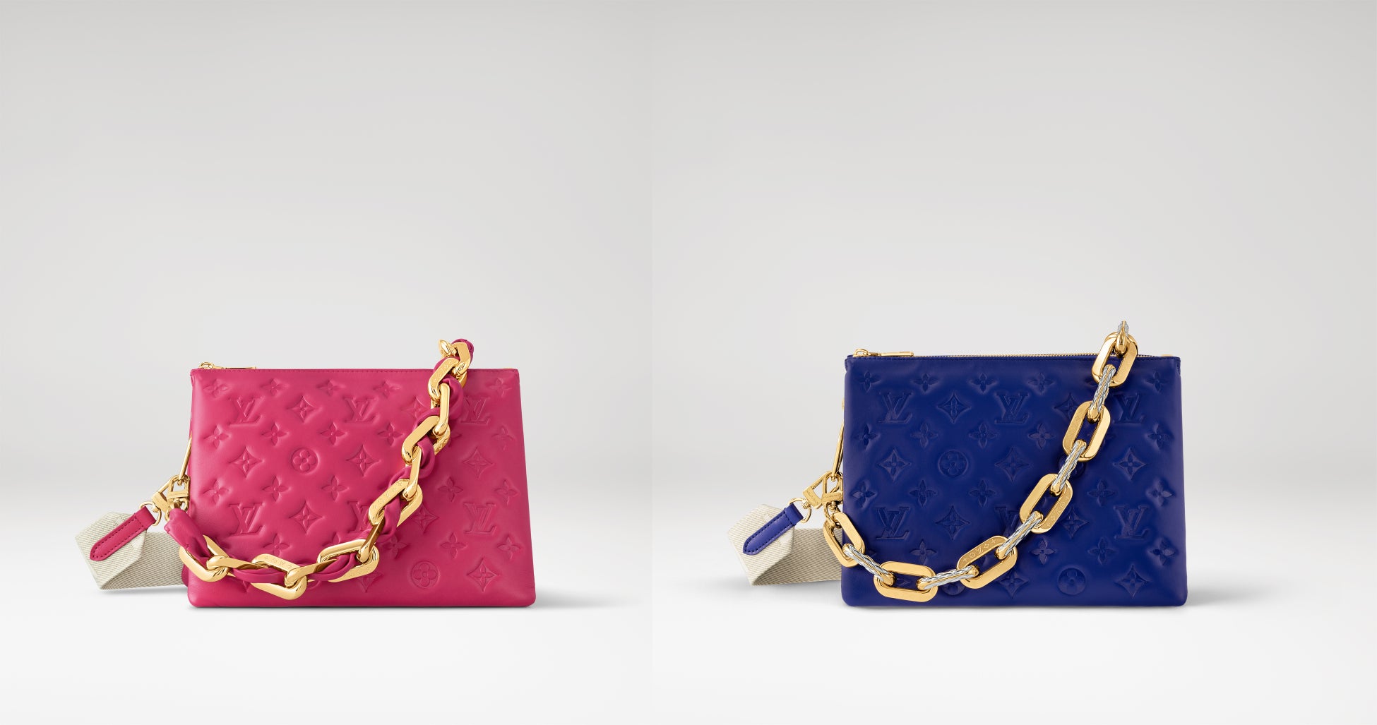 ルイ·ヴィトンのパフ感溢れるラムレザーに、モノグラム·パターンをエンボス加工で施した「クッサン」より、鮮やかなカラーが新登場。