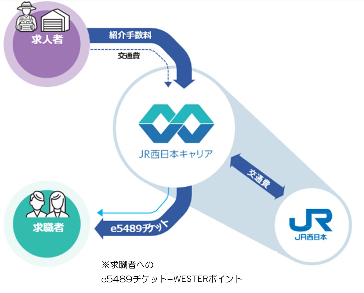 特徴1)求人者が求職者へ支払う移動交通費をJR西日本が鉄道の需給状況を考慮し柔軟