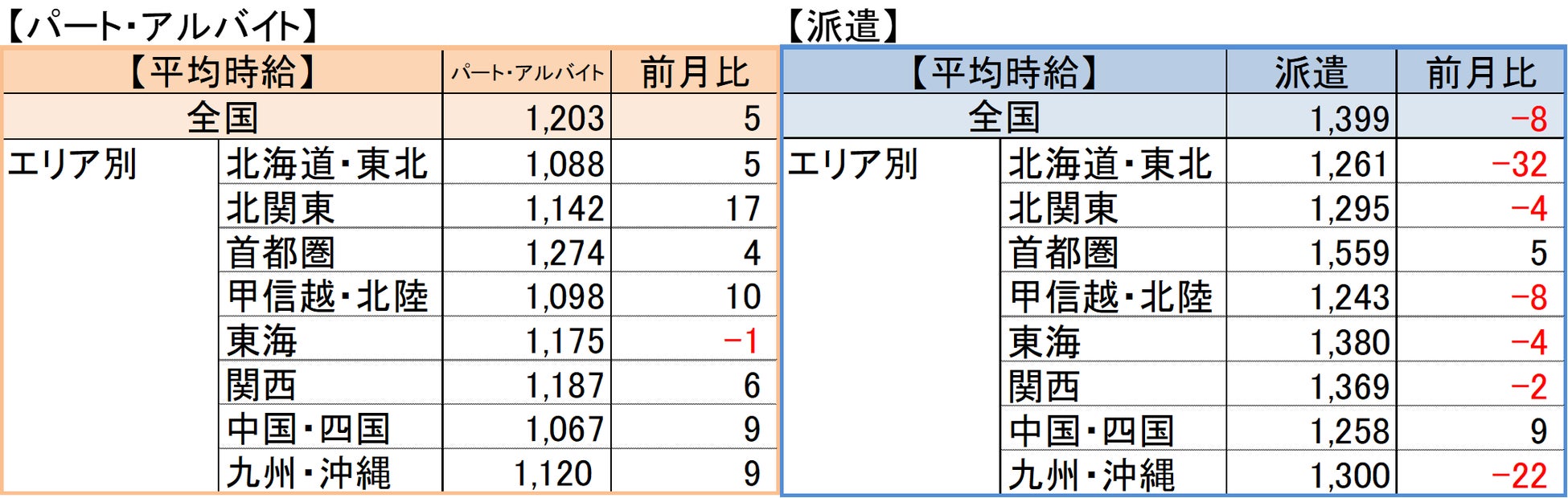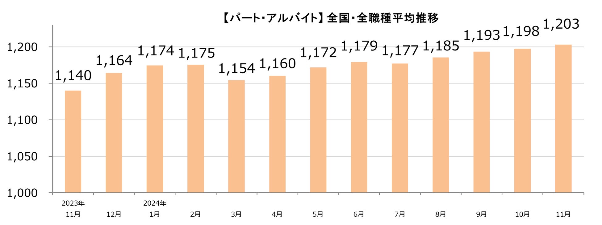 【パート・アルバイト】全国・全職種平均時給は1,203円。前月比+5円。前年同月比+63円。