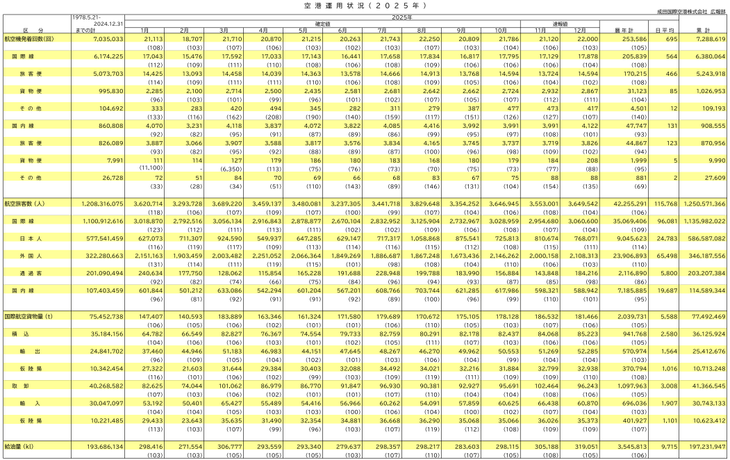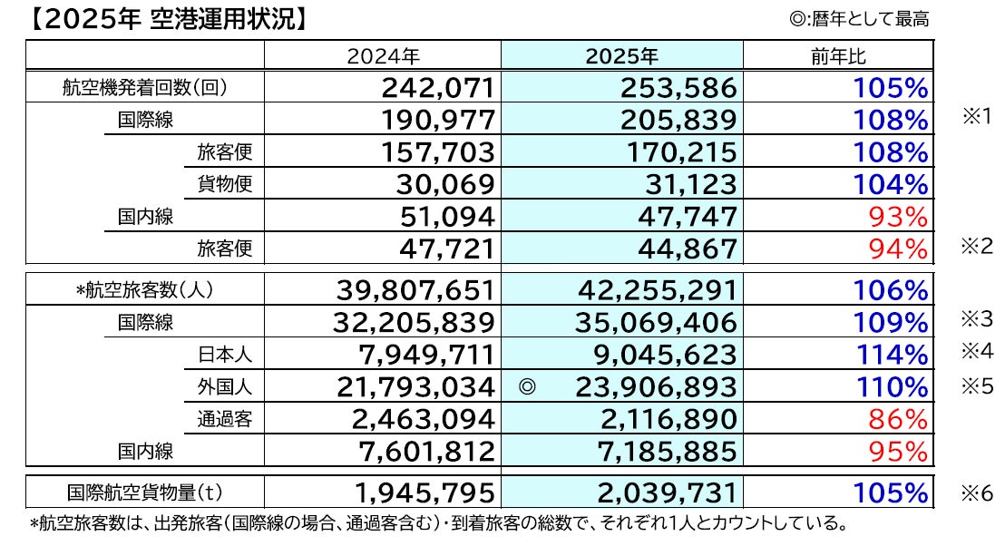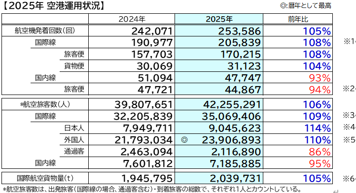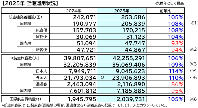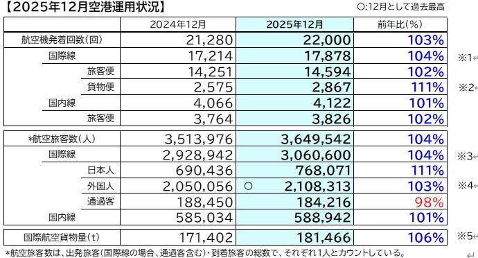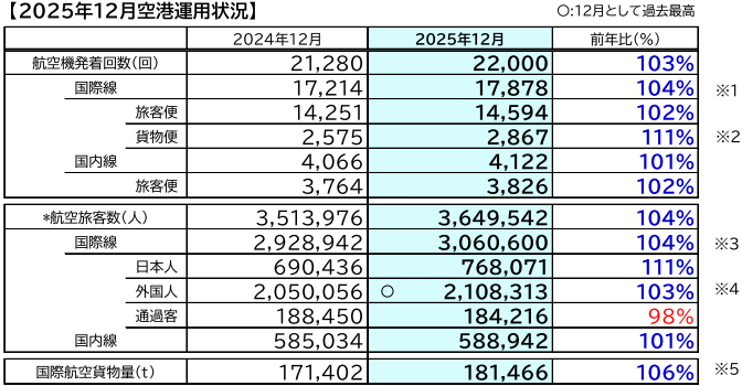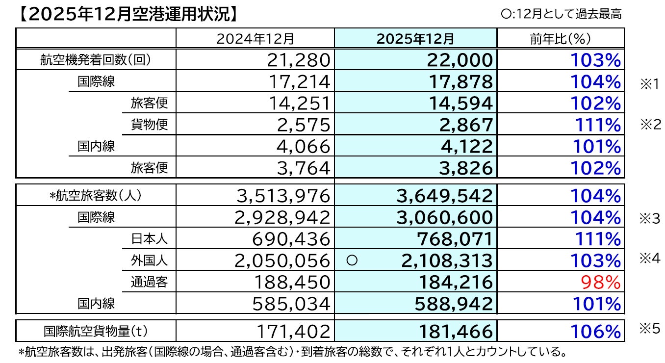 2025年12月 空港運用状況 国際線外国人旅客数が12月として過去最高に