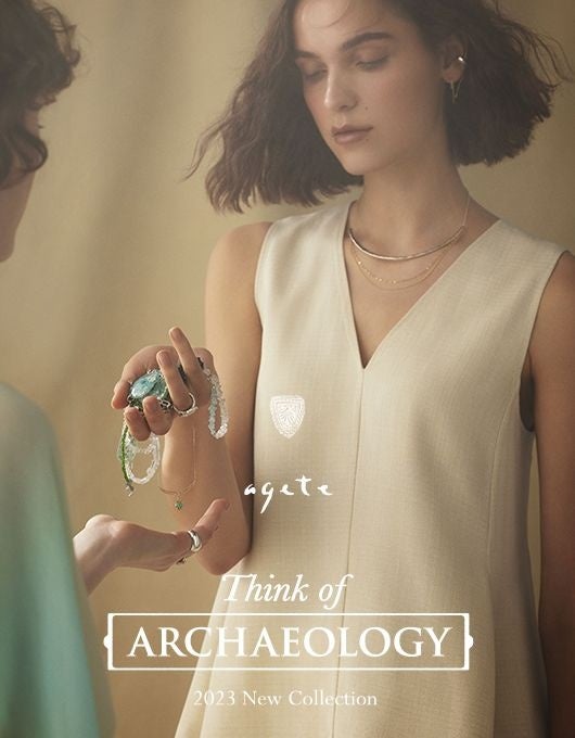 今シーズンのテーマは、「ARCHAEOLOGY~考古学~」。人々が育んできた文明や歴史からインスパイアされたデザインや、素材使いが新鮮な商品が揃います。( https://agete.com/pickup/2023newcollection_vol2 )