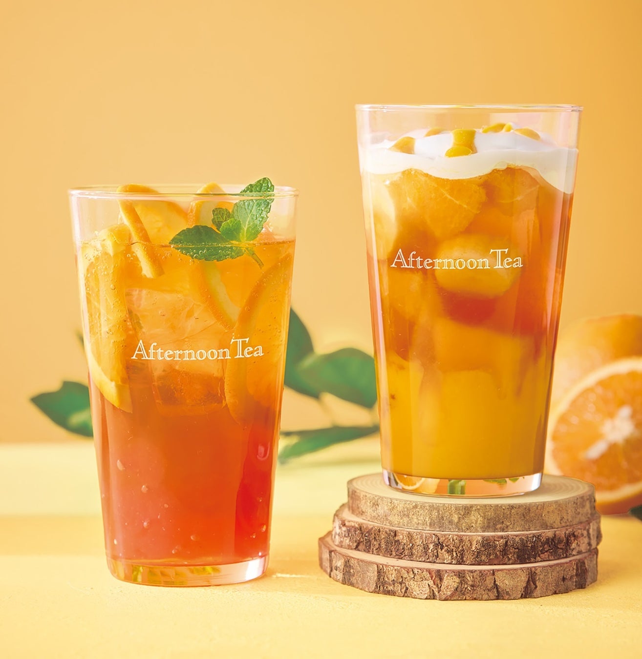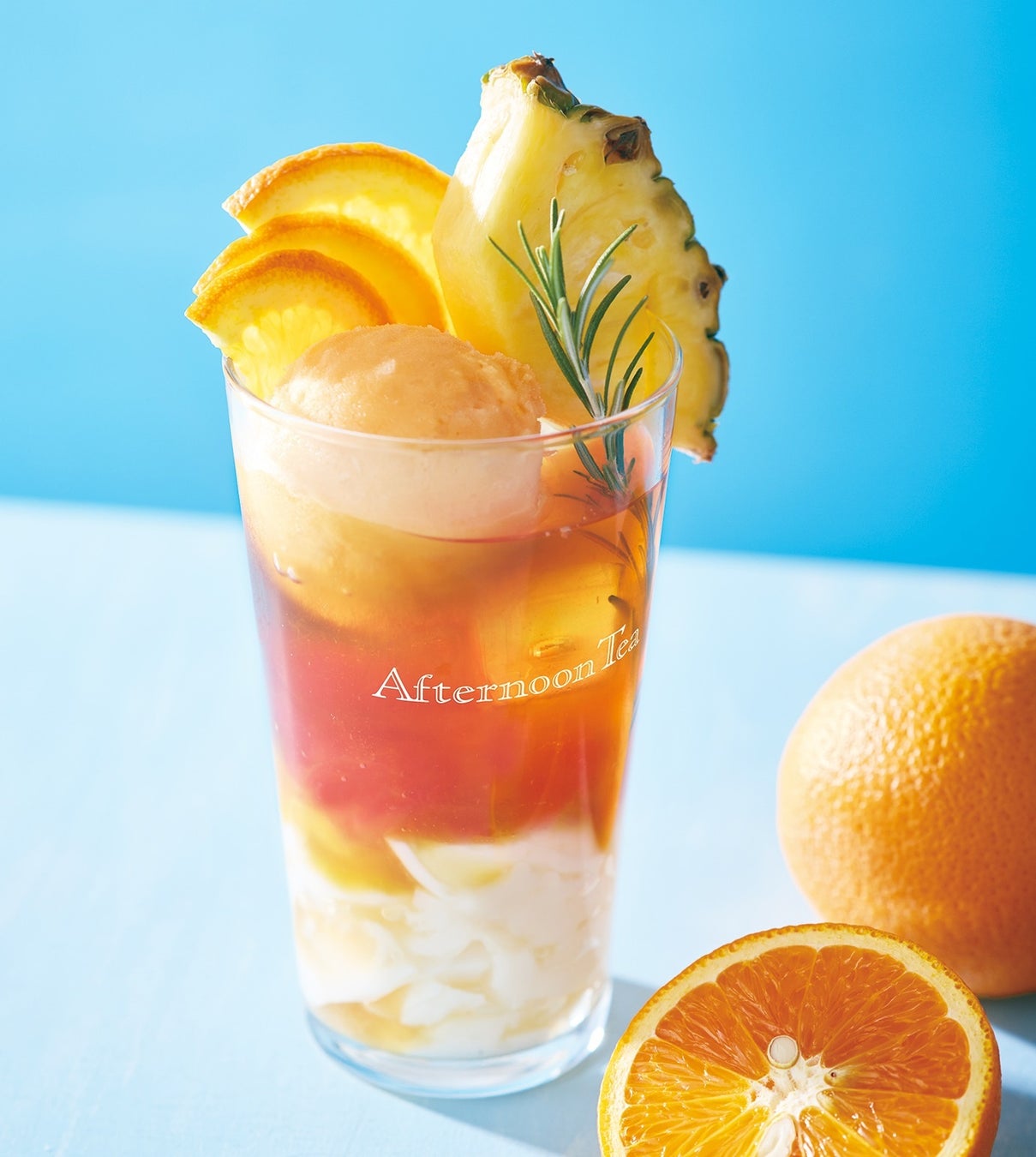爽やかな味わいの「オレンジアールグレイのスパークリングジュレッティー」、クリーミーな味わいの「フルーツエードティー オレンジ&マンゴー」とともに、暑い夏にぴったりなAfternoon Tea流のアイスティーをお楽しみください。