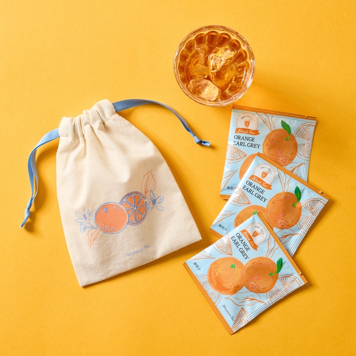 かわいいポーチにオレンジアールグレイの水出しアイスティーが入った、夏限定のティータイムセットです。(オレンジアールグレイ ティーバッグ3個)