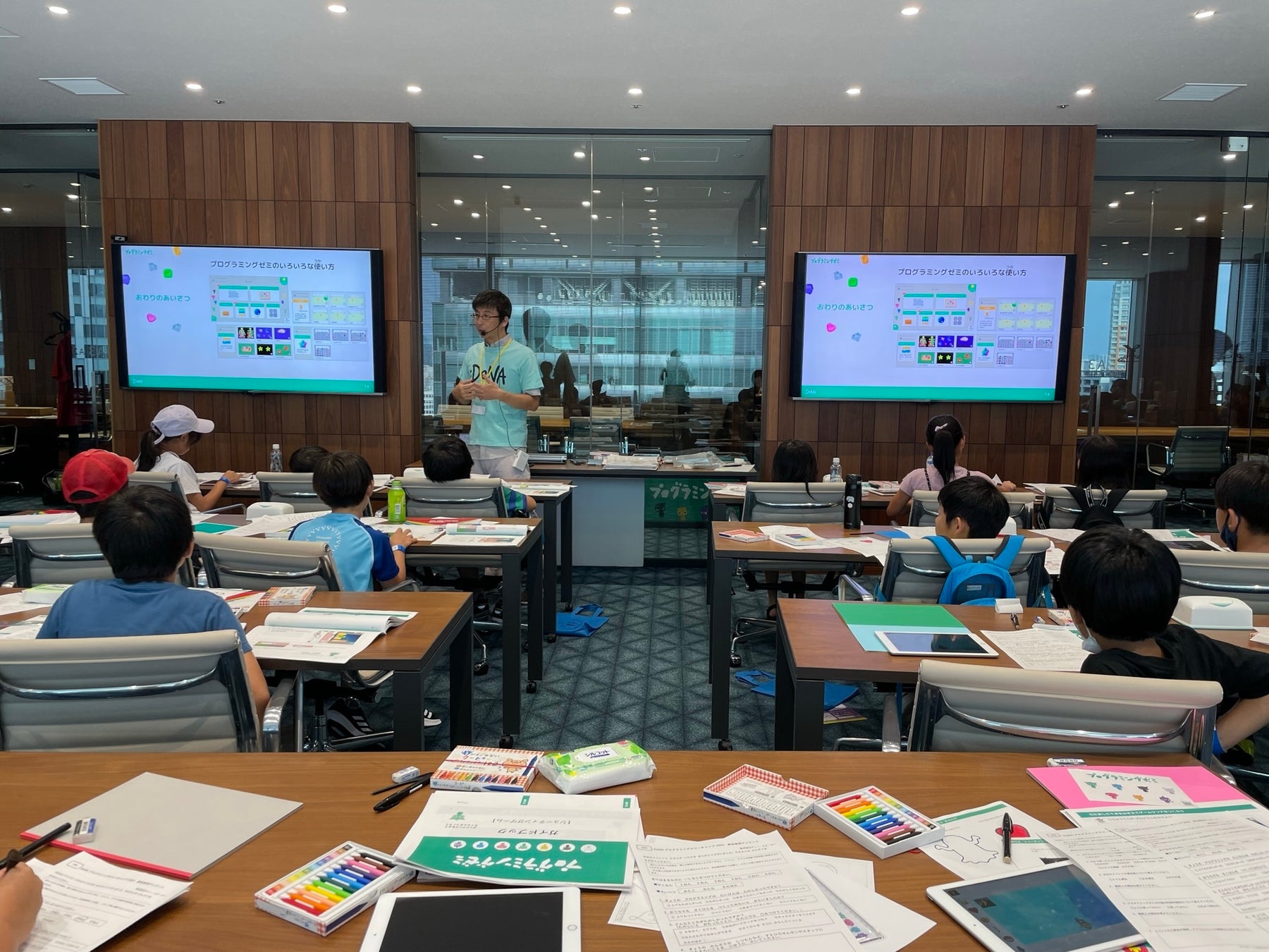 2023年度で5回目となったプログラミングイベント「プログラミングサマーキャンプ2023」では、小中学生に向けた各社によるプログラミングや生成AIに関するワークショップなど、多様なコンテンツをリアルイベントにて提供しました。今年は、GMOインターネットグループのGMOメディアが運営するプログラミング教育ポータルサイト「コエテコ byGMO」主催の『コエテコ ジュニアプログラミングフェス in 渋谷』と連携し、小学生向けのプログラムの一部については共同で開催しました。また、MIXIによる「MIXIのエンジニアが教える Unityで実践 ゲーム制作ステップアップ講座」では、ユニティ・テクノロジーズ・ジャパン株式会社 クリエイター・アドボケイトの𥱋瀨 洋平氏にご登壇いただき、MIXI本社で「ゲームだけじゃない! 広がるUnityの世界」をテーマにご講演いただきました。
