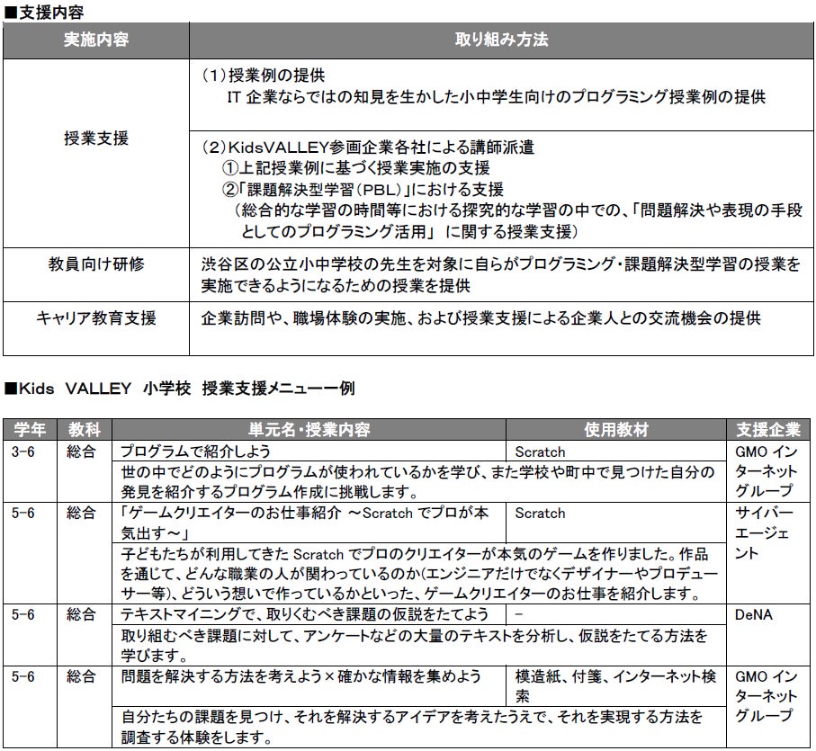 Kids VALLEY 2024年度 渋谷区立小中学校への支援内容の詳細