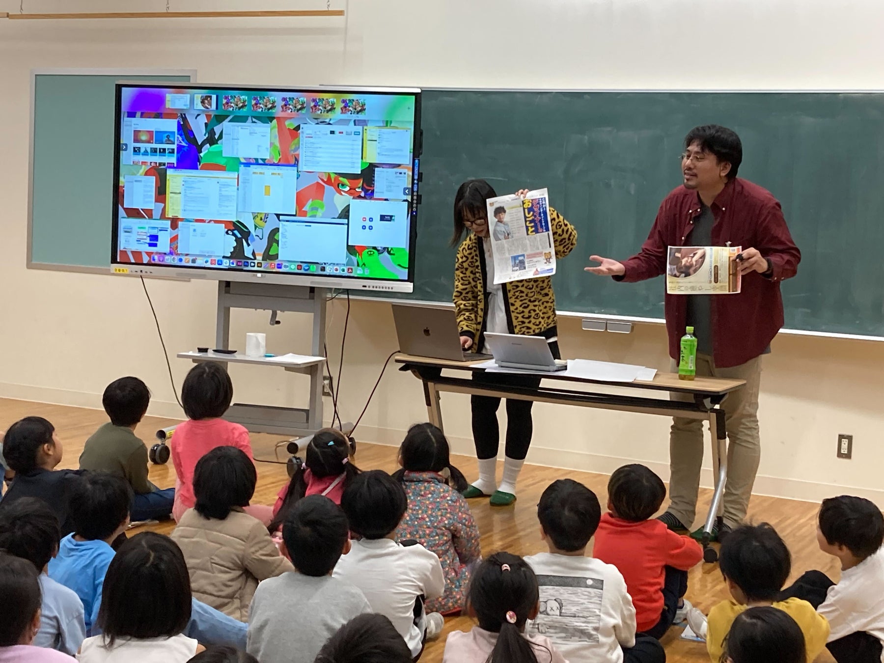 ▲左:渋谷区立幡代小学校(2年生)でのGMOインターネットグループによる地域課題の情報収集手法レクチャーの様子