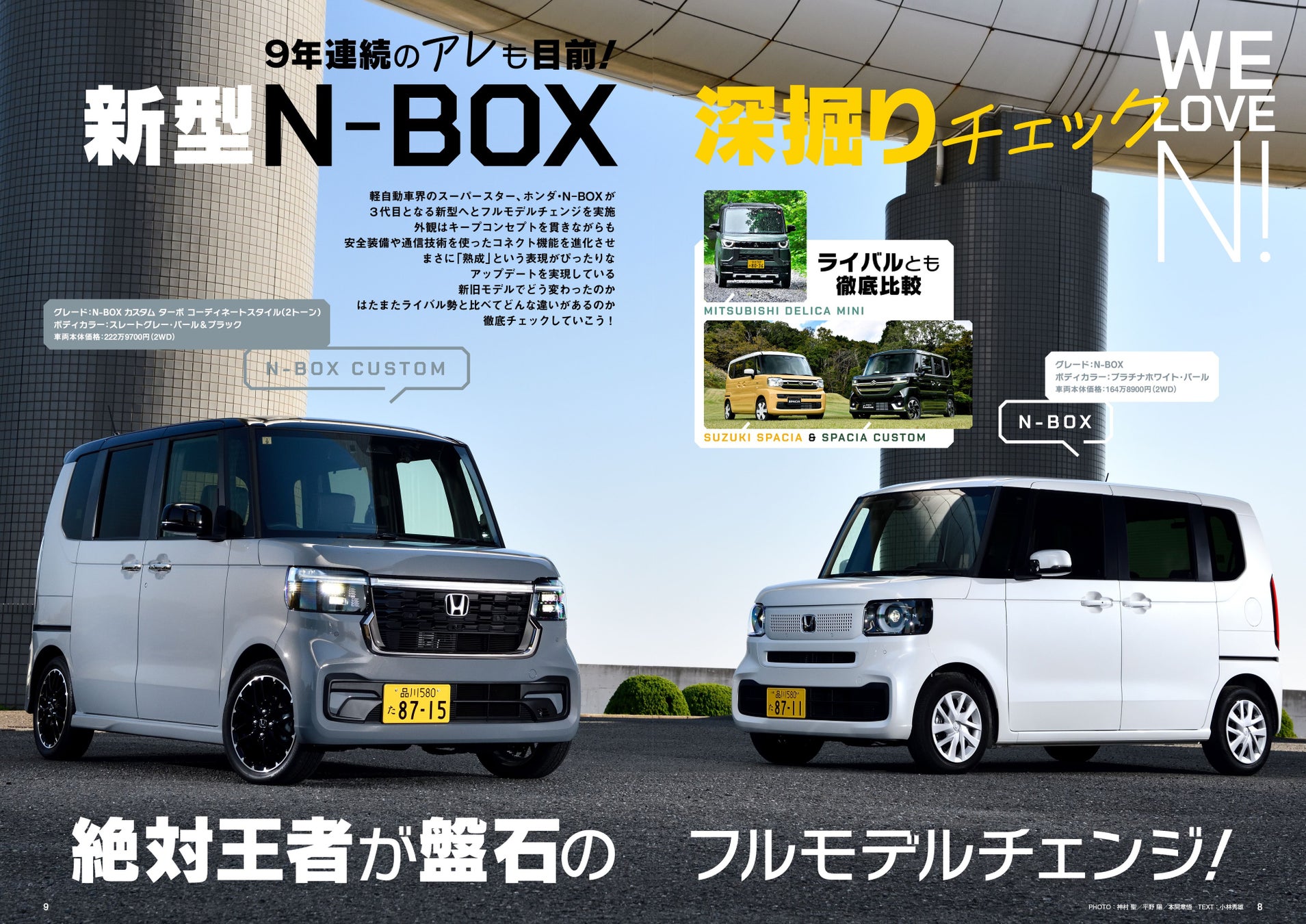 新車販売台数ナンバーワンのN-BOXが満を持して3代目となる新型にフルモデルチェンジ。先代と比較しながら、内外装がどのように進化したのかを事細かにチェック。また、N-BOXカスタムのライバル車となる2023年登場の新型車「スペーシアカスタム」と「デリカミニ」とも徹底比較してみたので、ぜひ見比べて欲しい。