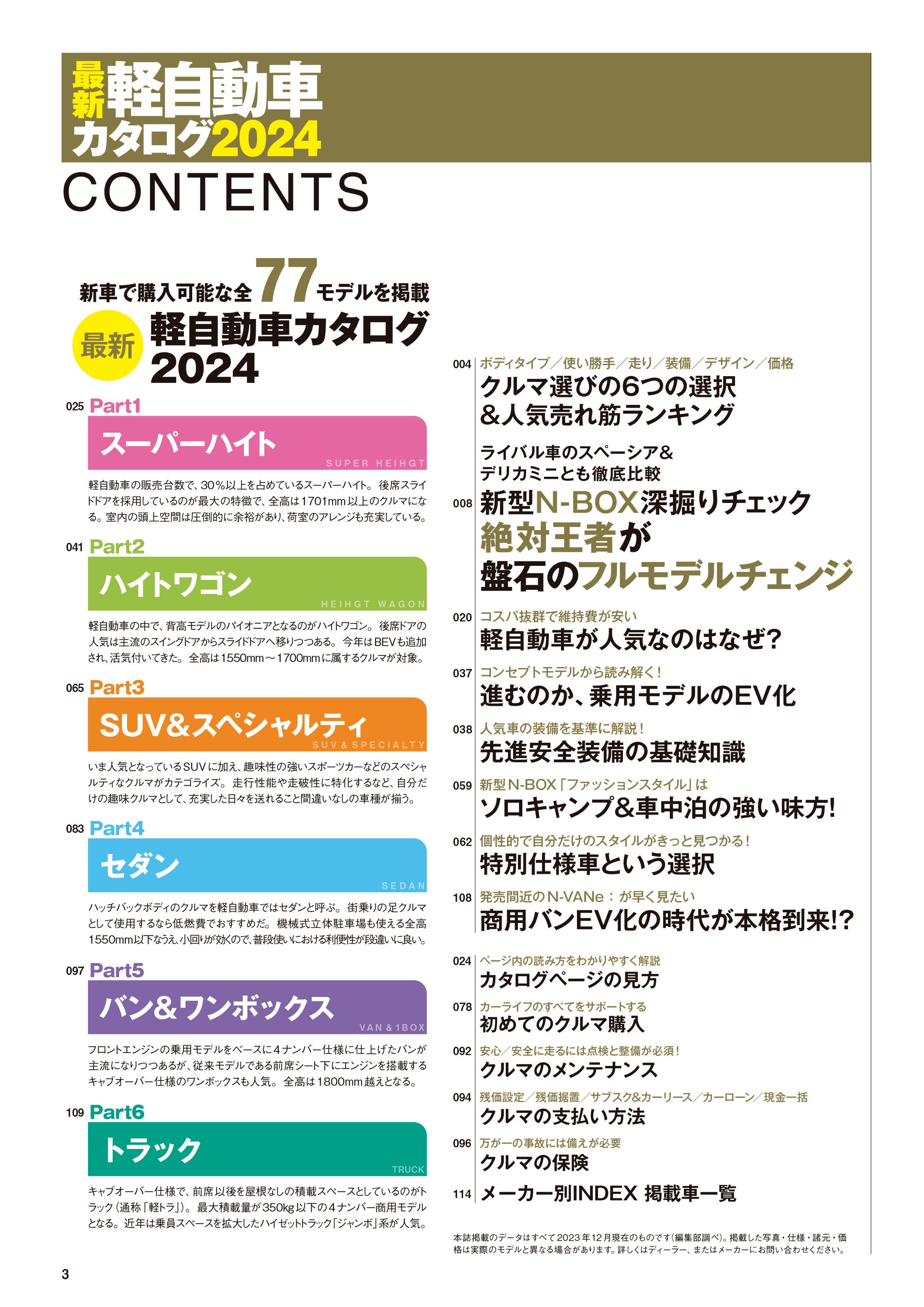 見やすい/選びやすいを極めたガイドブック!『最新軽自動車カタログ2024」』は2023年12月26日発売!