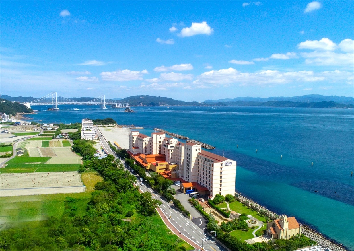 淡路島から車で10分、瀬戸内海国立公園内のオーシャンフロントホテル。目の前に鳴門海峡と淡路島の絶景が広がり、海に昇る朝日や日本百名月に認定された、月の光の道「ムーンロード」を望みます。
