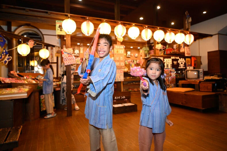 ホテル1階「阿波の國」では、藍甕から天然灰汁発酵建ての阿波藍染めで、ハンカチや手ぬぐい、コットンバック、Tシャツ、ストール染めが体験できます。その他、大谷焼の絵付け、昔懐かしい縁日遊び、昭和の駄菓子屋「狸堂」、温泉卓球も楽しめます。