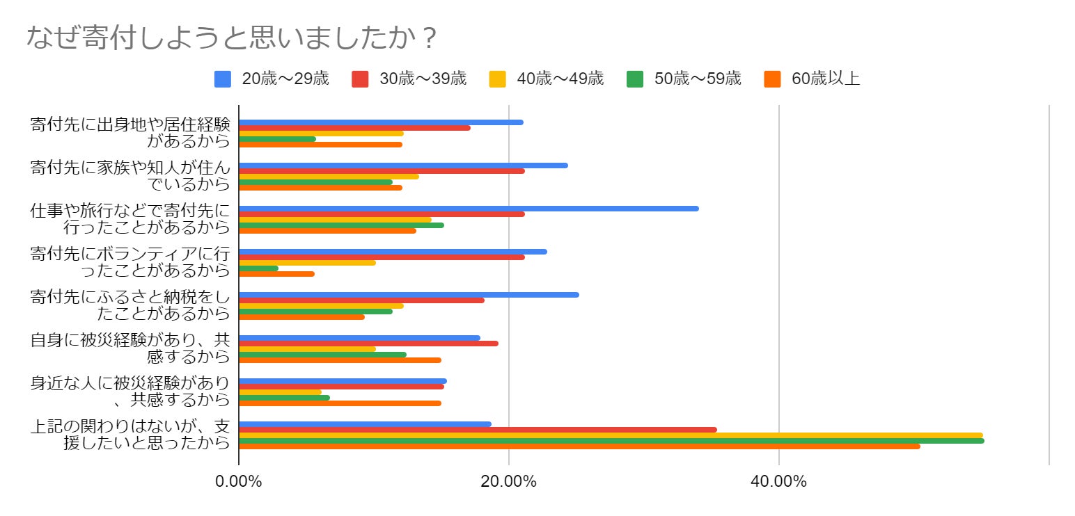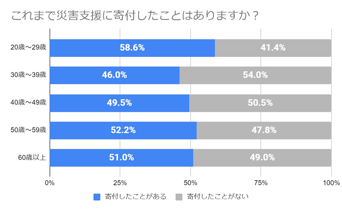 ~ 災害支援への寄付経験が最もあるのは20代 ~ ~ 20代は、旅行やふるさと納税などその地域との関わりが寄付の動機に ~