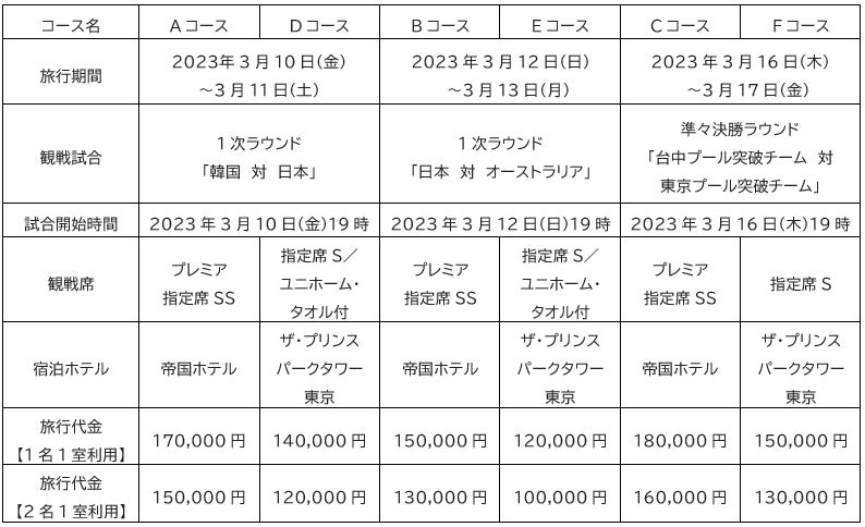 *旅行代金には、観戦チケット代とホテル宿泊代が含まれます。