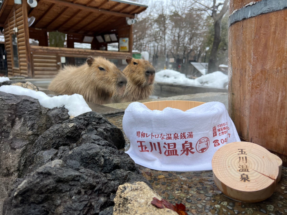 昭和レトロな温泉銭湯 玉川温泉と埼玉県こども動物自然公園がコラボ。冬の風物詩「カピバラ温泉」に玉川温泉の源泉をお届けします!
