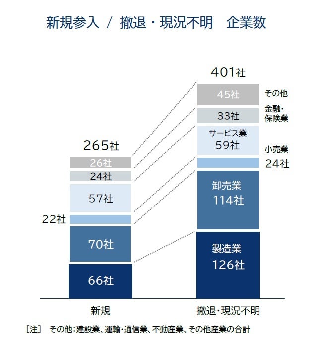 製造業が1千社超で最多も、2年で約5%減少 「半導体製造装置」は社数増加