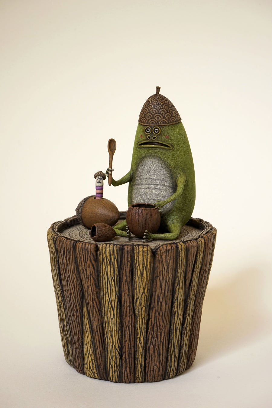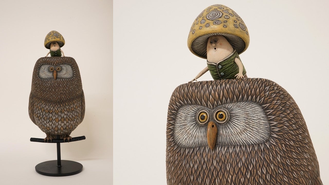 本展は、昨年銀座 蔦屋書店で好評だった「キノコの精霊と森の仲間たち」展の第二弾となります。アトリエ周辺の森でよく見かけるフクロウからイメージを広げた作品を中心に、キノコの精霊の子供達(チビタケ)やカエル、ハリネズミ、ミノムシなど新たに森の住人として加わった仲間たちの新作立体作品を発表します。また今回、キノコの精霊をモチーフにしたオリジナルTシャツやポストカード、ステッカーもご用意、より物語世界を楽しめる構成となっています。