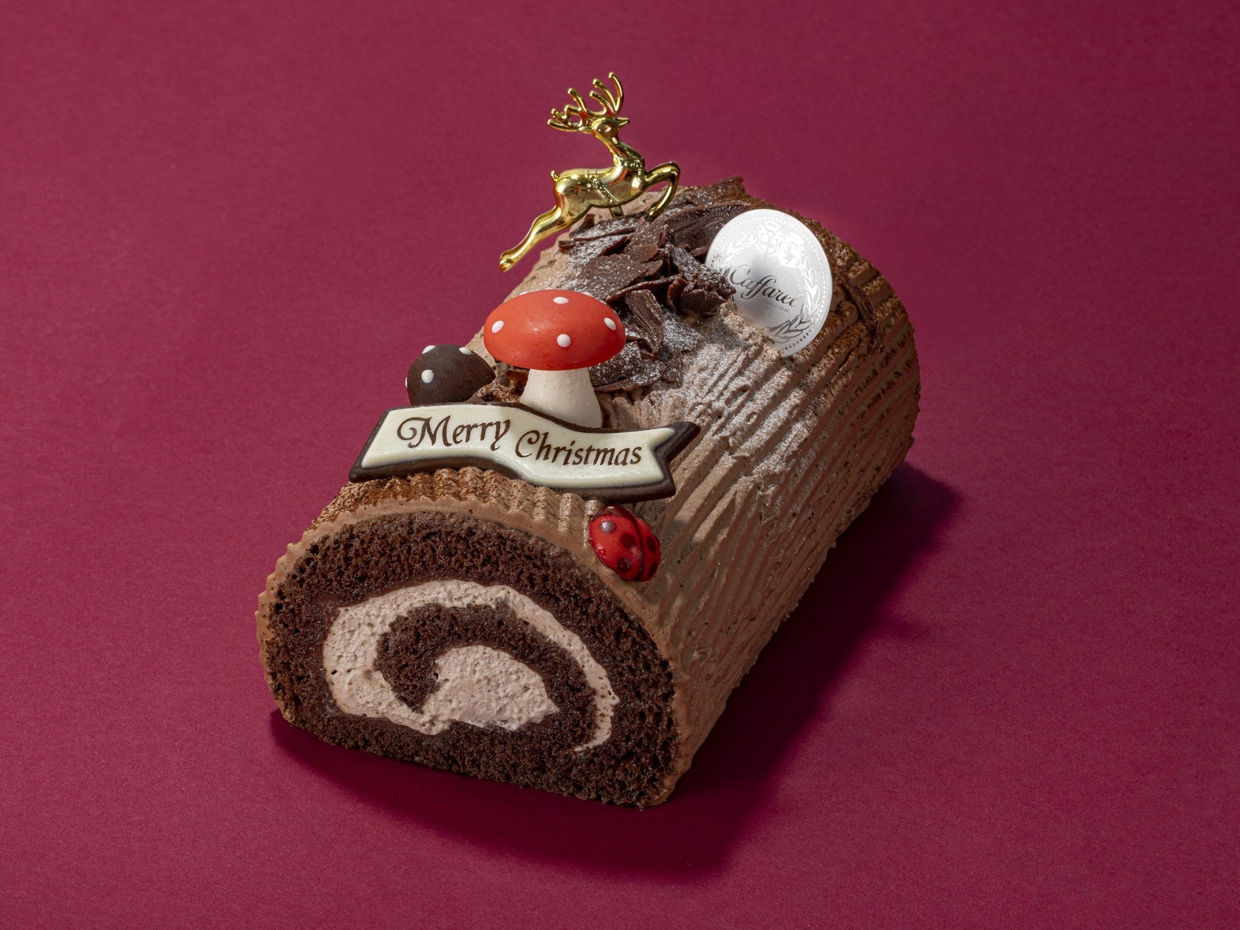 ブランドを象徴するジャンドゥーヤを贅沢に使用。ココア生地でジャンドゥーヤクリームとガナッシュを包み込むことで、一口ごとに濃厚で奥深い風味が広がります。仕上げにはジャンドゥーヤの削りチョコをトッピング。森から拾ってきた薪をイメージしたデザインに、きのこやてんとう虫などカファレルならではのモチーフを添えて、愛らしく上品な仕上がりに。東京駅限定で楽しめる、聖夜にふさわしい華やかなケーキです。