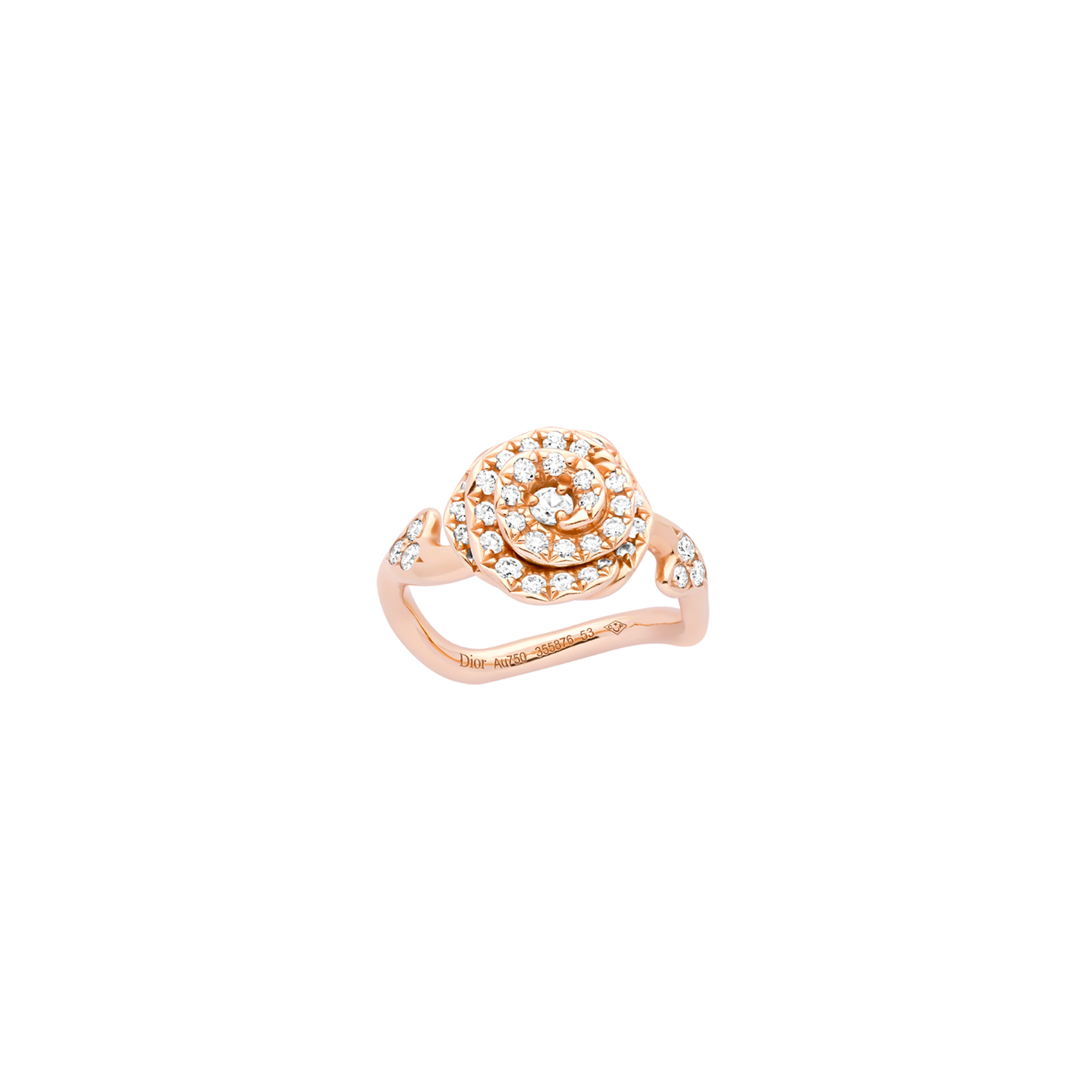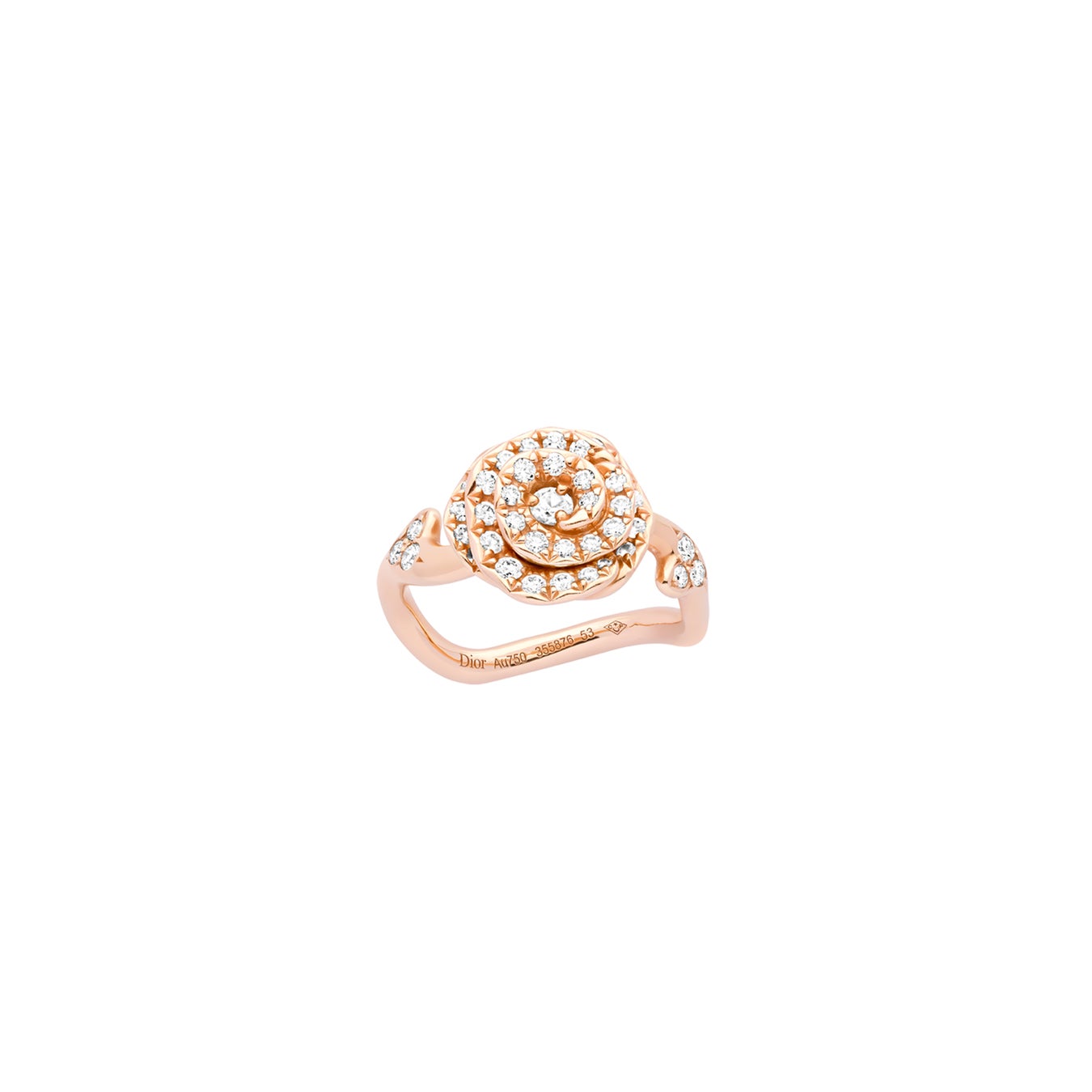 薔薇はドレスやイブニングコートにプリント、刺繍、ブロケードされ、ベルトやスカートの膨らみをさりげなく飾ったり、あるいはシフォンドレスに描かれるなど、クリスチャン・ディオールが手掛けた数々のクチュールドレスにあしらわれてきました。なかでも開花を控えたつぼみの薔薇をピンクゴールドとパヴェダイヤモンドでデザインした「ローズ ディオール クチュール」は、優美な煌めきと魅惑的なエレガンスが際立ちます。