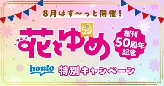 大日本印刷株式会社(DNP)が株式会社丸善ジュンク堂書店、株式会社文教堂及び株式会社トゥ・ディファクトと共同で運営するハイブリッド型総合書店「honto(https://honto.jp/)」は、白泉社の少女まんが雑誌「花とゆめ」の創刊50周年を記念した特集サイトを公開いたしました。また2024年8月2日(金)から8月31日(土)まで、「花とゆめ」の人気作品がお得に読めるキャンペーンを開催します。