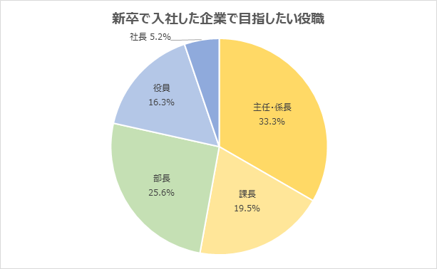 (3)新卒で入社した企業で目指したい役職は「主任・係長」が33.3%で最多。次いで「部長」25.6%が続く