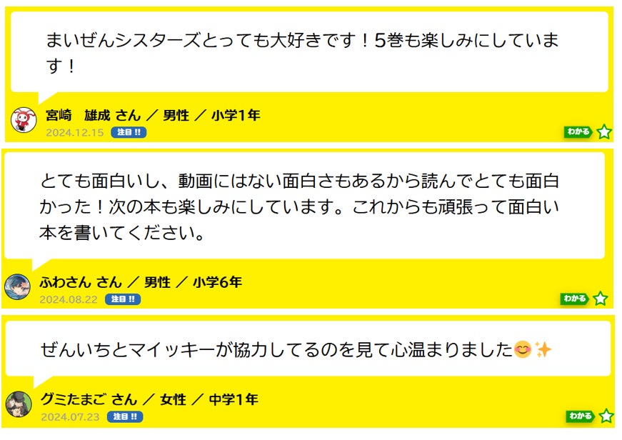 本シリーズではすべての漢字にはふりがながついているため、小学校低学年のお子さんが一人で読み始める本としてもおすすめです。実際に、小学生読者から感想のおたよりやコメントが多数寄せられています!