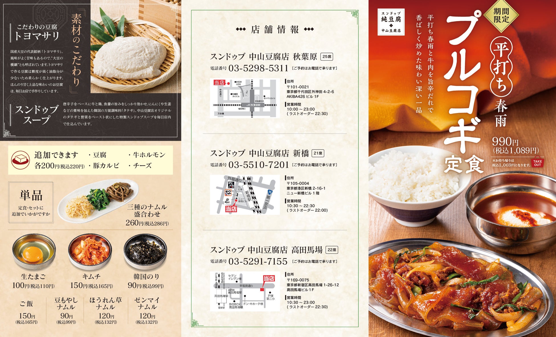 アークランドサービスホールディングス株式会社の⼦会社、「⾁めし岡もと」などを運営する株式会社トビラダイニング(本社:東京都千代⽥区/代表:大内 勇一)は、スンドゥブ定食専門店「スンドゥブ 中山豆腐店」にて、期間限定メニュー「平打ち春雨プルコギ定食」を2024年7⽉18⽇(木)より販売開始いたします。