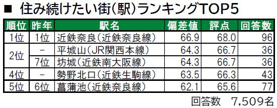 ■住み続けたい街(駅)トップは、2年連続で近鉄奈良
