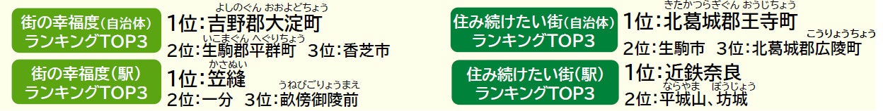 いい部屋ネット「街の幸福度 & 住み続けたい街ランキング2023<奈良県版>」(街の住みここちランキング特別集計)発表