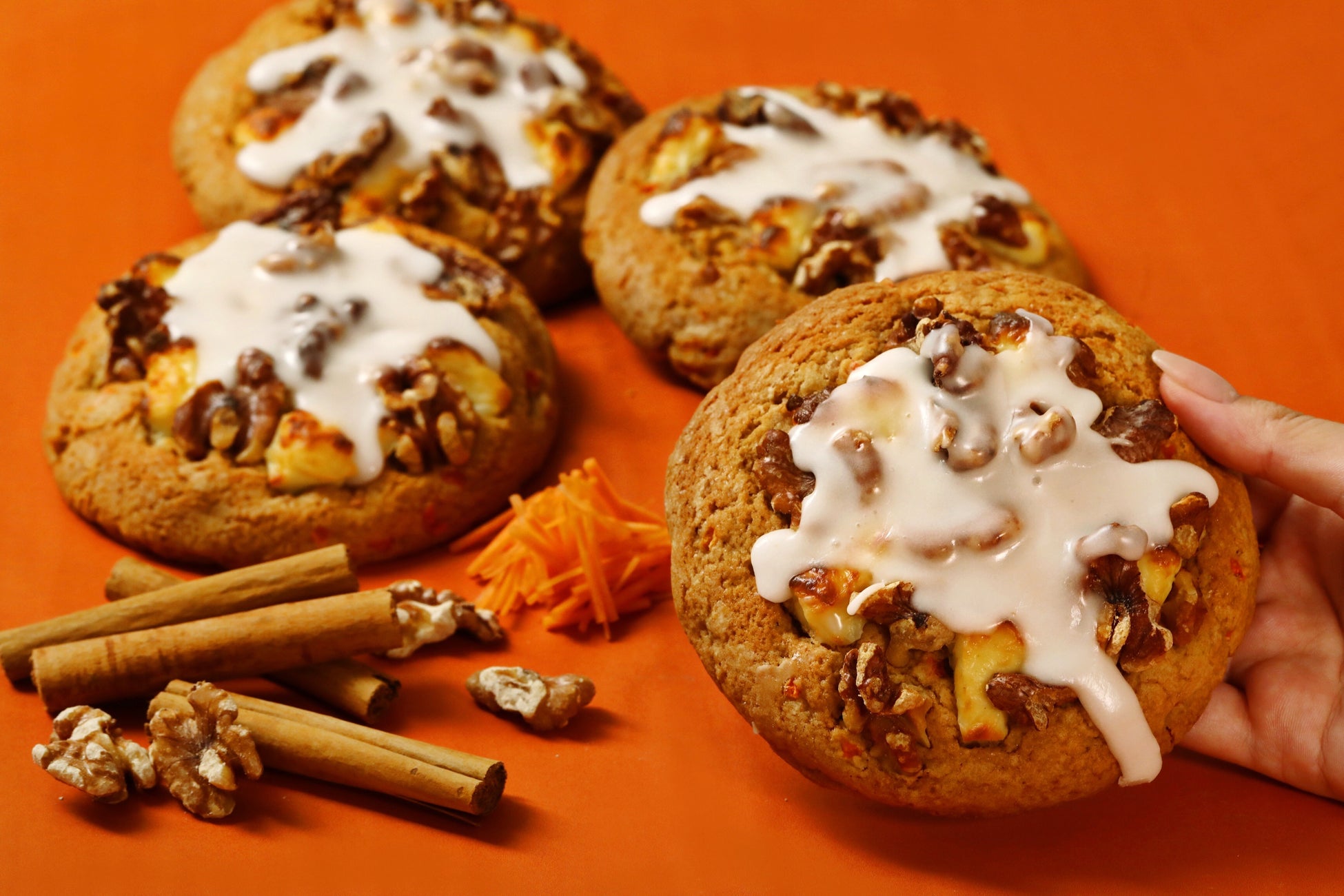 人参とシナモン、カリっと食感のくるみに、こっくりとしたクリームを添えて。