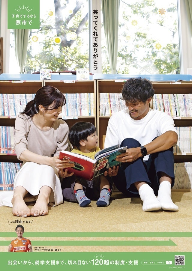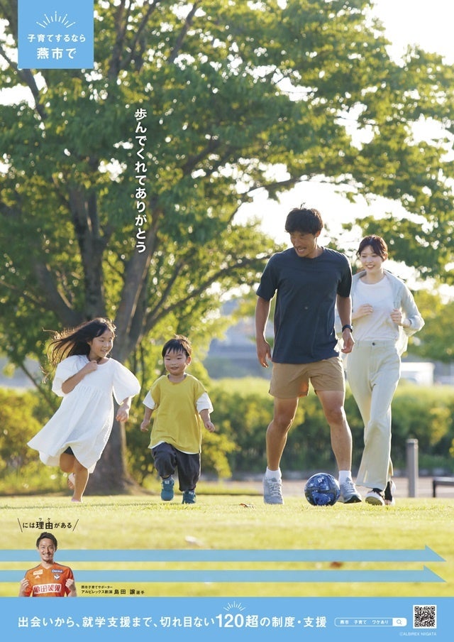 このたび、ホームタウンである燕市より「燕市子育てサポーター」に任命いただいているアルビレックス新潟の島田譲選手をモデル起用した広報・PR媒体が完成しましたので、お知らせいたします。