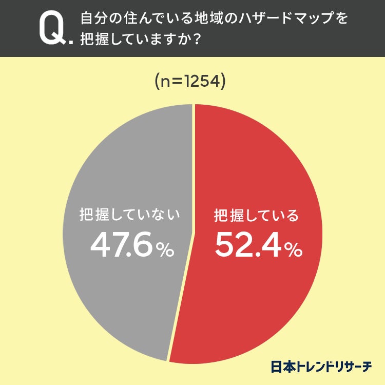 【ハザードマップ把握していますか?】52.4%が、自分の住んでいる地域のハザードマップを「把握している」