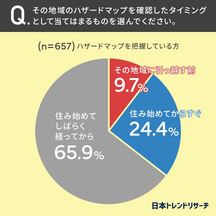 残りの65.9%の方が「住み始めてしばらく経ってから」ハザードマップを確認したようです。
