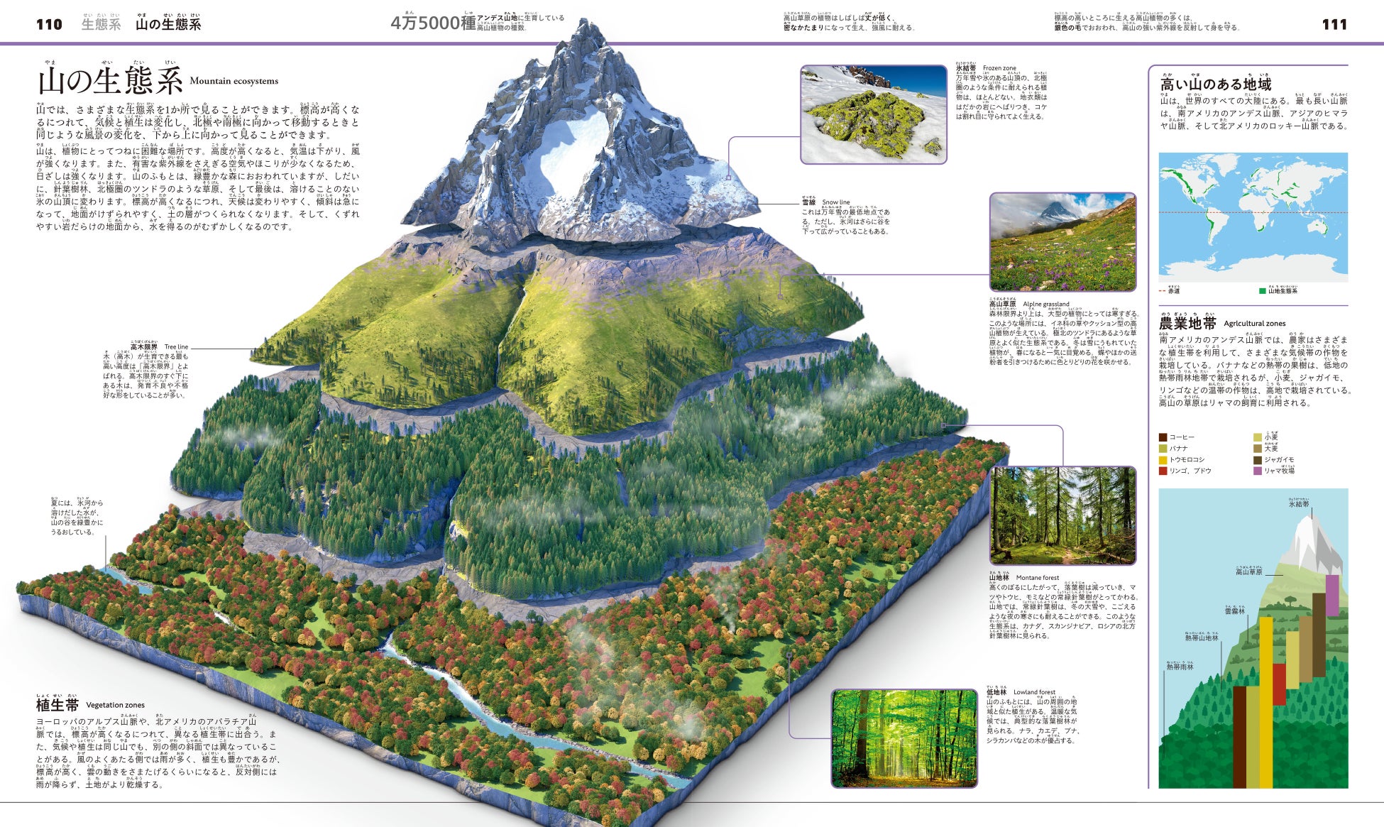 生態系のしくみ/物質の循環/熱帯雨林/砂漠/北方林/落葉樹林/草原/山の生態系/マングローブ林/ケルプの森/光をめぐる戦い/着生植物/アリ植物/食虫植物/ピッチャープラント/寄生植物/身を守る方法