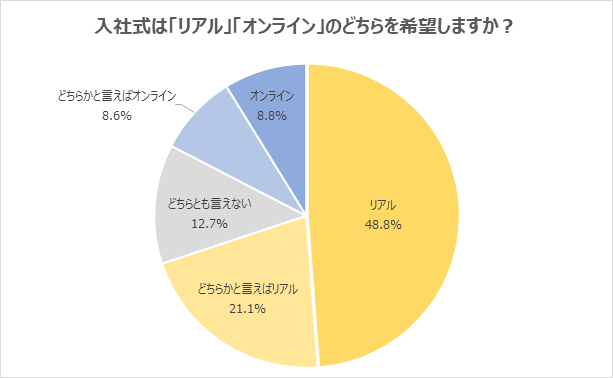 入社式は「リアル」での開催を希望する新社会人が7割に迫る。「同期と交流したい」「上司や先輩社員と直接話し、企業の雰囲気を知りたい」の声/新社会人アンケート