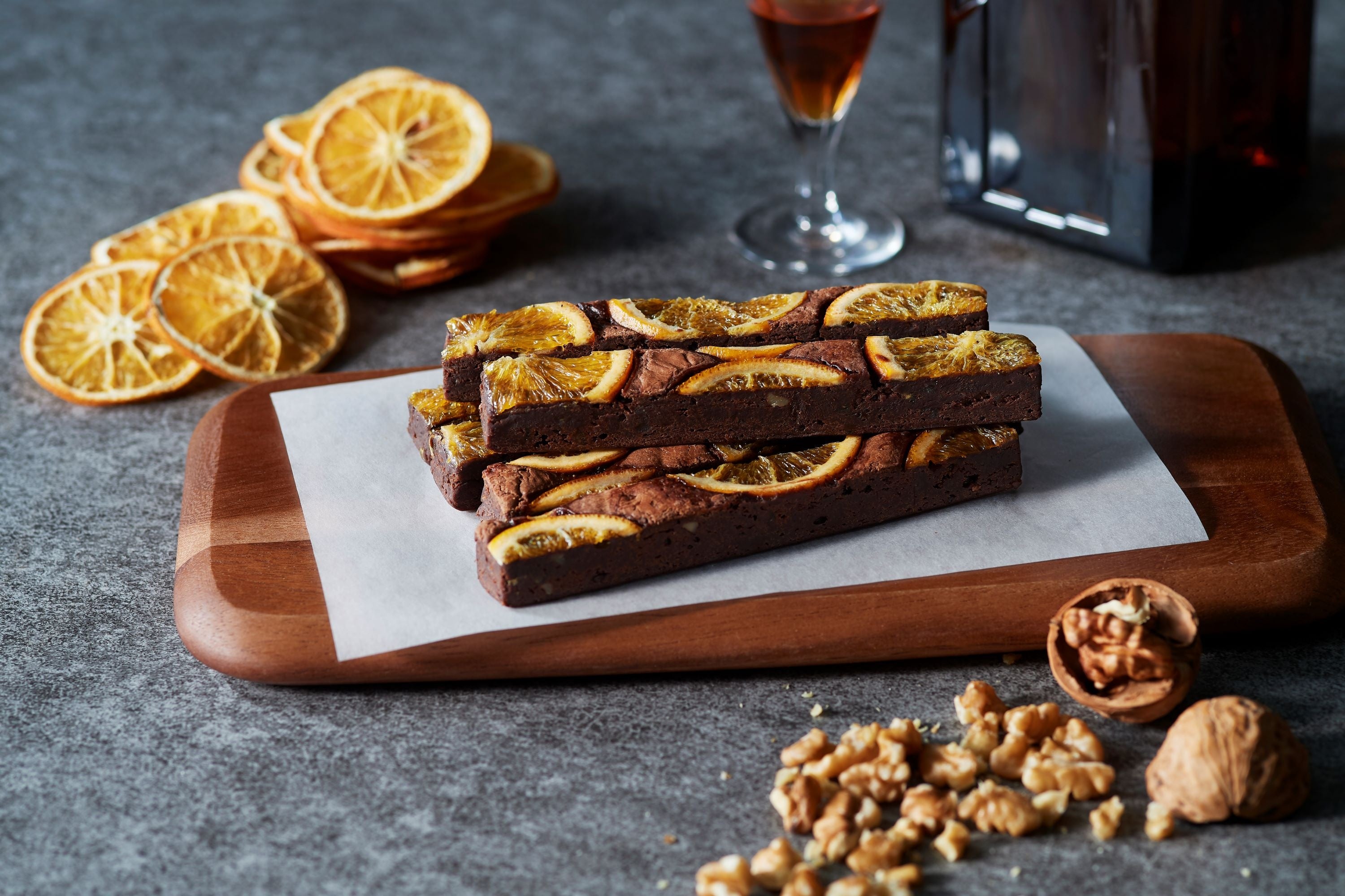 バレンシアオレンジとオレンジリキュールを生地に練りこんだ、濃厚なチョコレートに爽やかな柑橘が香る生ブラウニー。スライスしたオレンジを重ね、見た目も鮮やかなブラウニーに仕立てました。