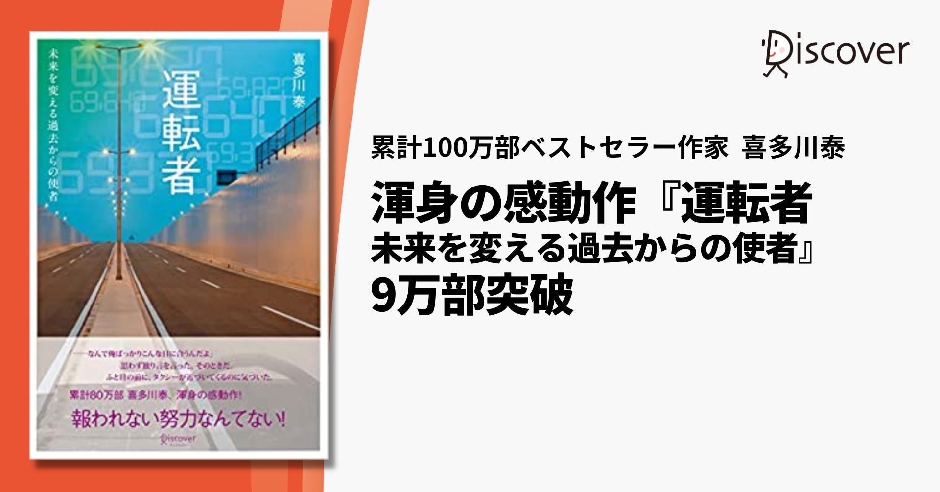 株式会社ディスカヴァー・トゥエンティワン(本社:東京都千代田区、取締役社長:谷口奈緒美)は2019年3月28日刊行の『運転者 未来を変える過去からの使者』(喜多川泰・著)を増刷し、9万部を突破しました。