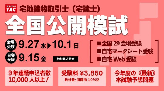 ▼TAC宅建士講座「全国公開模試」の詳細・お申込みはこちらから▼
