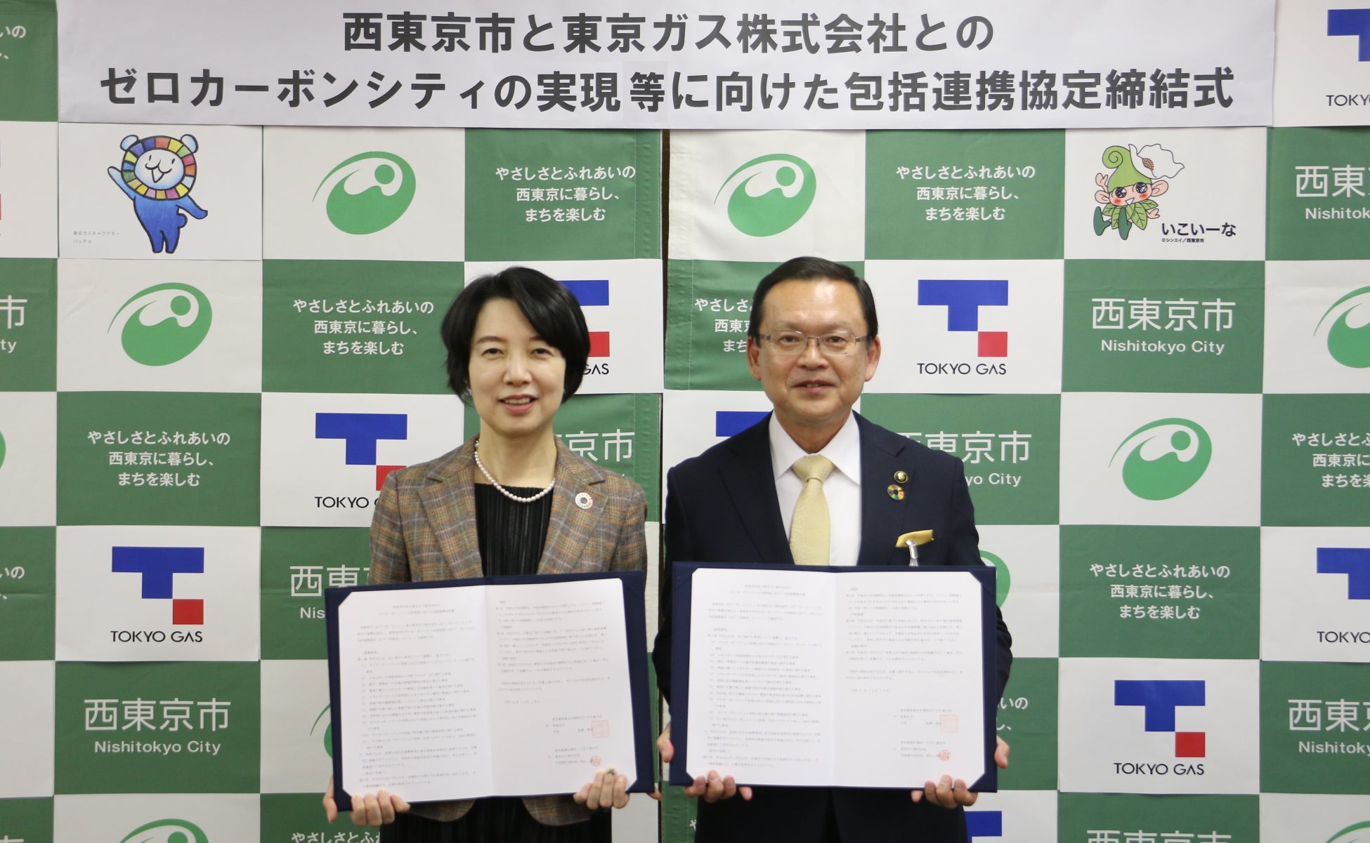 (左から 東京ガス常務執行役員:小西雅子、西東京市長:池澤隆史)