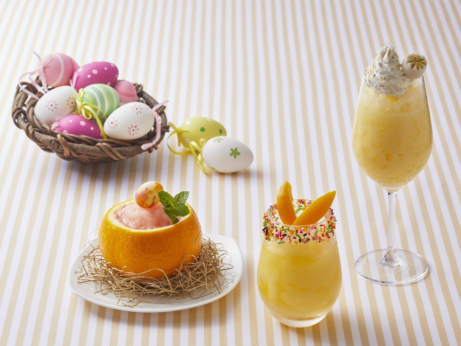 また、卵黄のリキュールとマンゴーを組合せた“ハッピーイースター”は、濃厚な甘みが特徴。ホイップクリームとうずらの卵をトッピングし、イースターの雰囲気を演出いたしました。