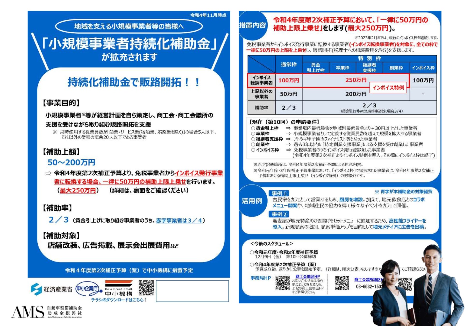 【補助上限200万!小規模事業者持続化補助金】自動車整備補助金助成金振興社と共同で店舗改装、広告掲載、展示会出展費用などの販路開拓を支援する小規模事業者持続化補助金の無料相談を開始