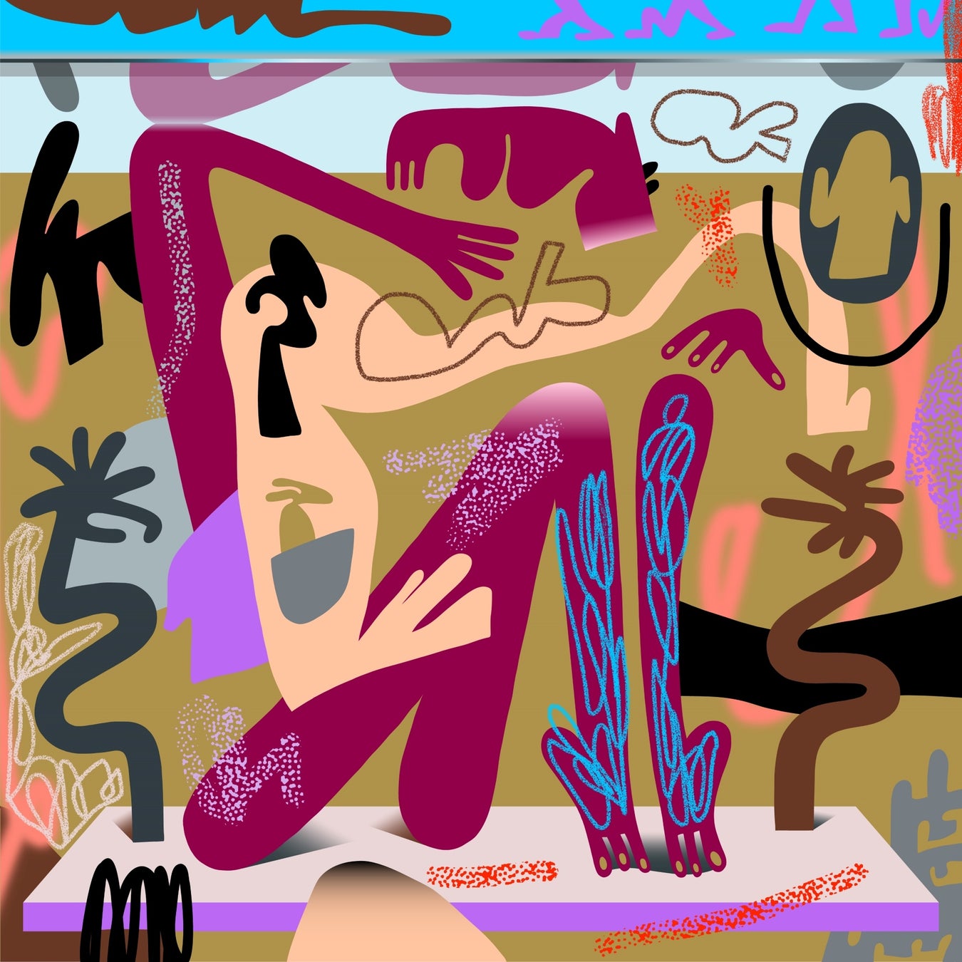 Keeenue(キーニュ)は、縦横無尽に伸びた手足と鮮やかな色彩で、複数のレイヤーを重ねながら具象と抽象を融合したような独創的な世界観を作り出しています。表現方法は、壁画、ペインティング、立体作品など多岐にわたり国内外で精力的に活動しています。