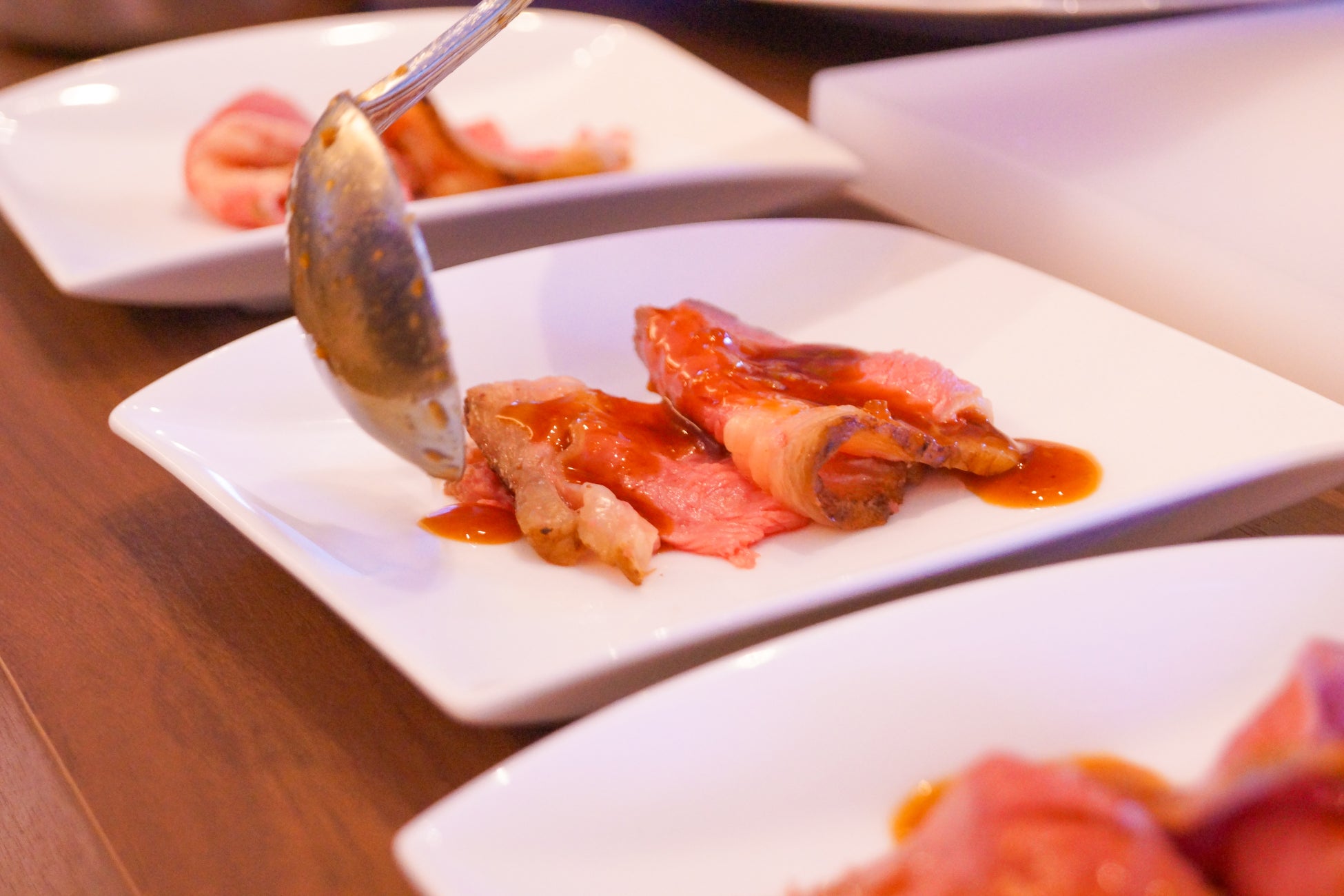 香ばしくジューシーに焼き上げ、ロゼピンクに仕上げています。レストラン料理長がその場でカッティングして提供いたします。