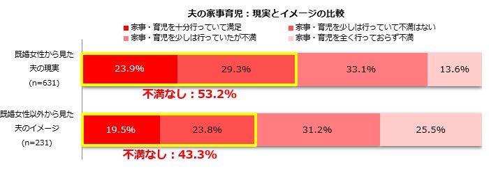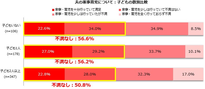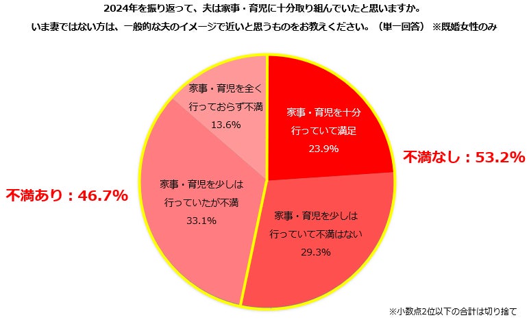 1.夫の家事・育児に「満足・不満はない」53.2%、「不満」46.7%