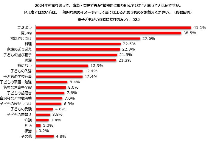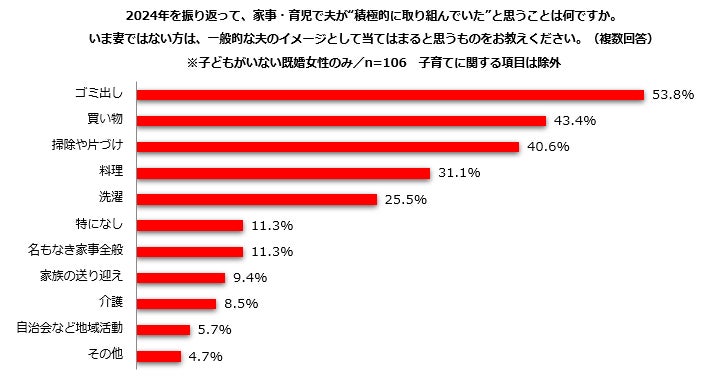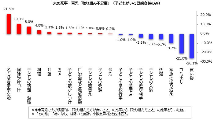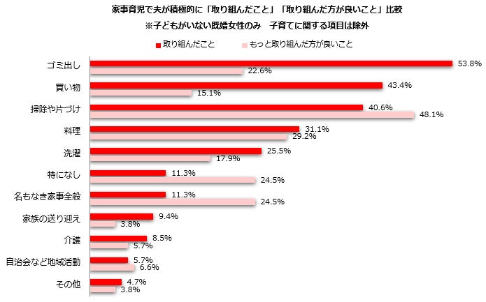 夫の家事育児「不満なし」が過半数超え/積極的に取り組んでいた家事1位は「ゴミ出し」