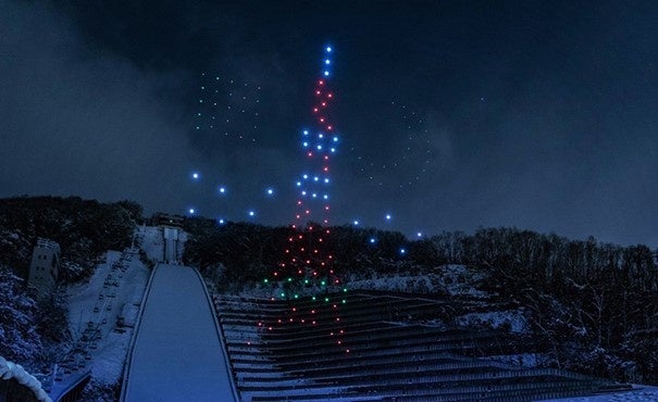 LEDライトを搭載した150基のドローンが音楽に合わせて札幌の夜空に舞い、様々な図形を描きます。光と音のショーをお楽しみください。