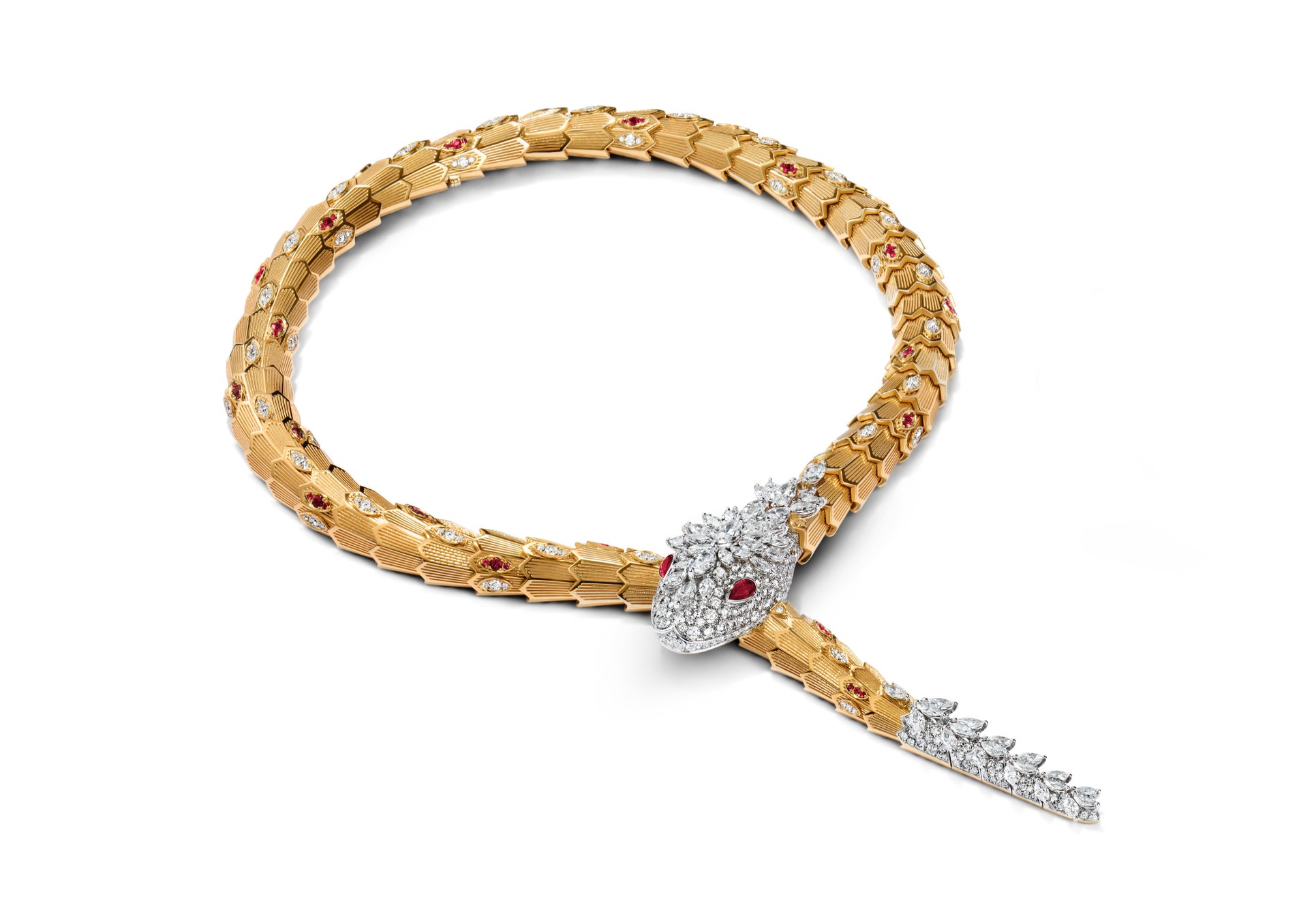 2022年5月25日 (カンヌ) – 女優のアデル・エグザルホプロは、ダイヤモンドとルビーがあしらわれた「セルペンティ」のハイジュエリーのネックレスを纏い、映画「Smoking Causes Coughing」のフォトコールに登壇しました。