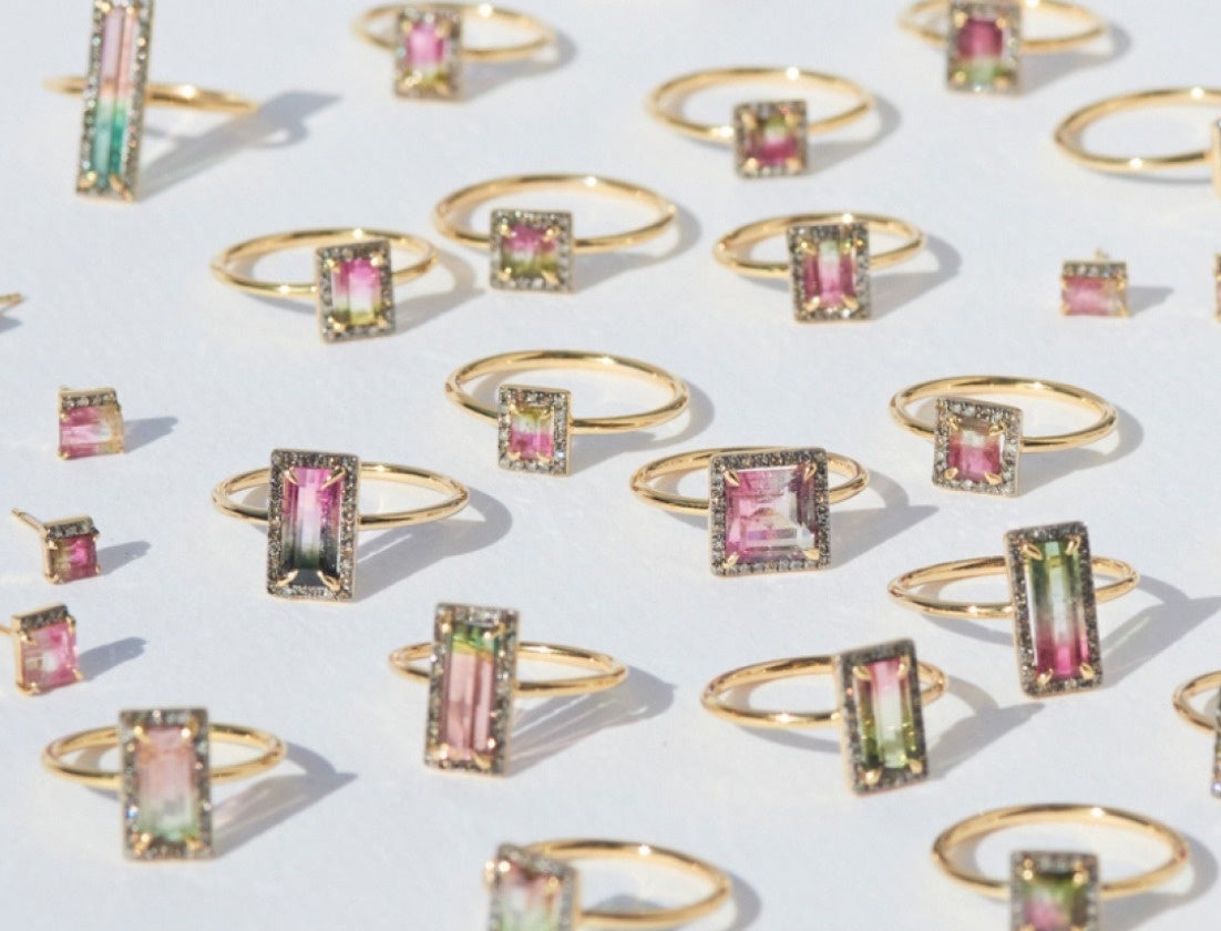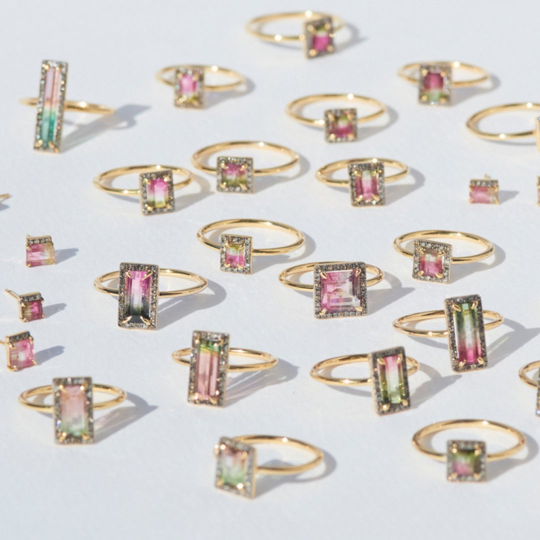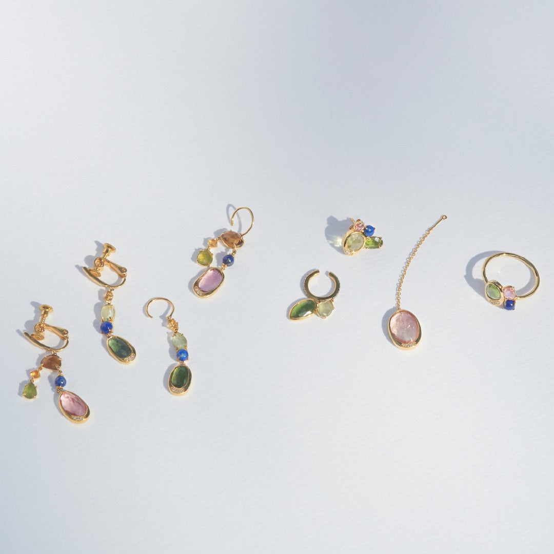 まるで豊潤な果実のように艶めくトルマリンにホワイトダイヤモンドを添えた、一点ものの5周年限定ジュエリー。リングをはじめ、耳元でたおやかに揺れるピアスやイヤリング、イヤーチャーム、イヤーカフをご用意しました。
