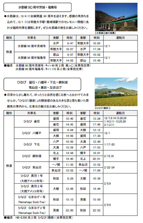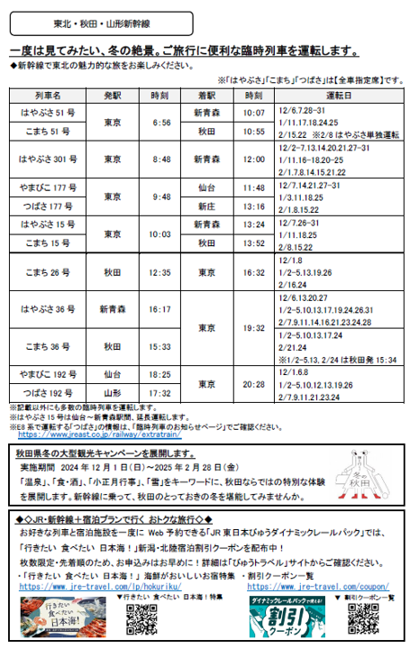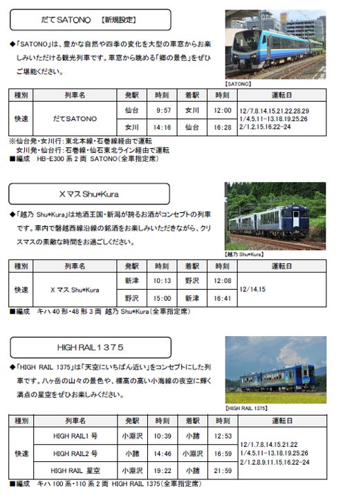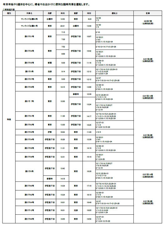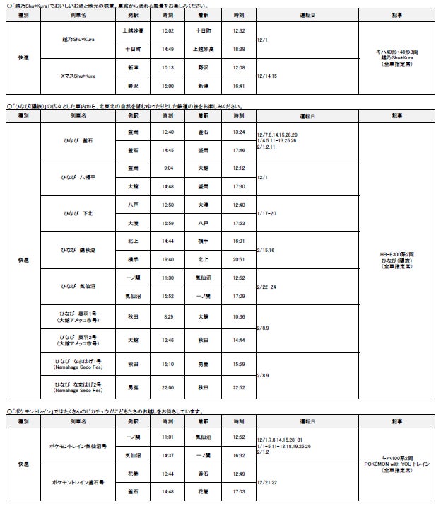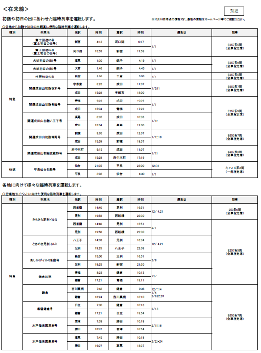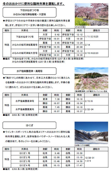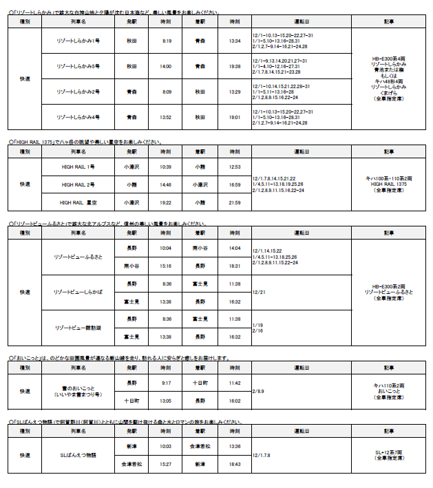 ※最新の臨時列車の情報は、「臨時列車のお知らせページ」で随時発表します。