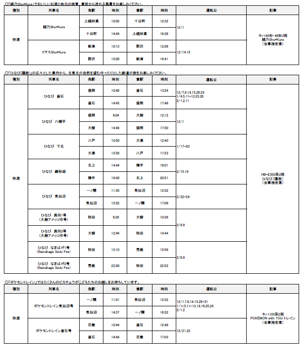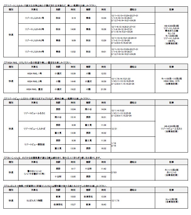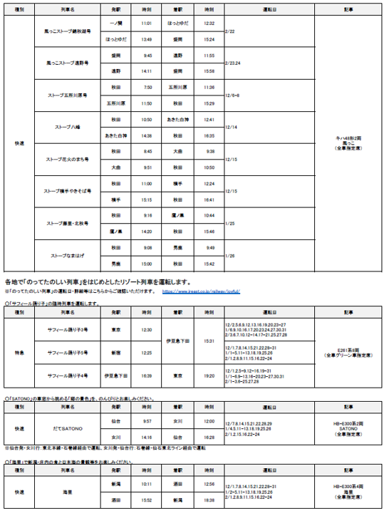 ※その他にも「のってたのしい列車」やイベント・キャンペーンに合わせた列車、行楽に便利な臨時列車を運転します。詳細については別紙をご覧ください。時刻表もあわせてご覧ください。