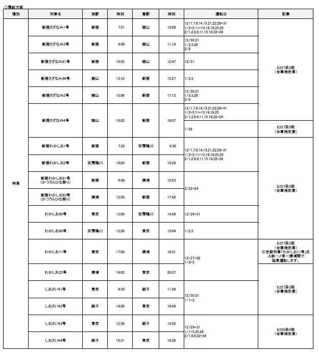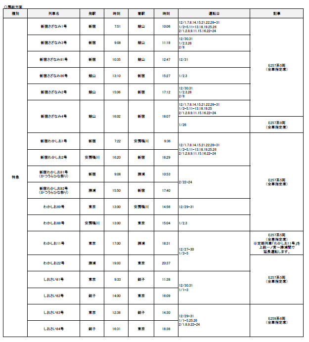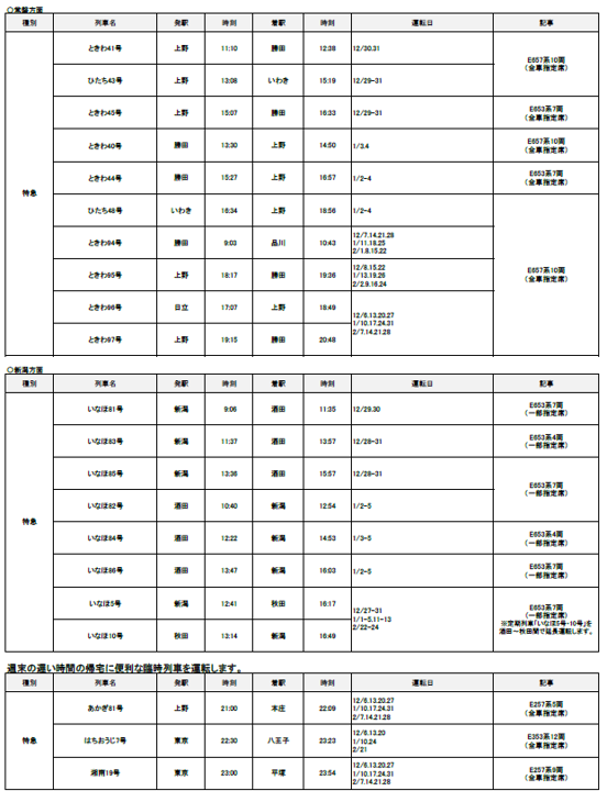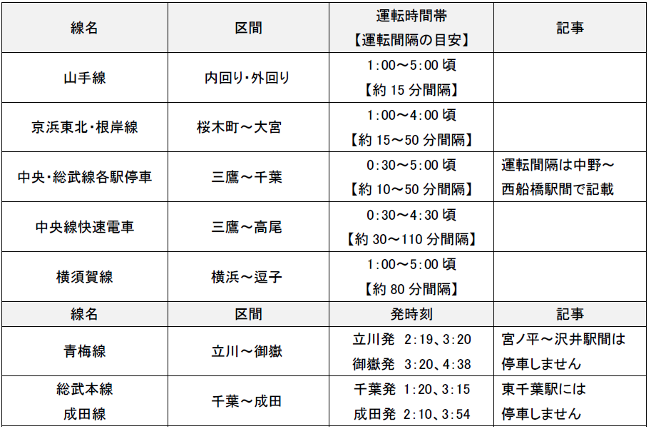 ※終夜運転については、12月6日(金)以降、デジタルJR時刻表及びJR東日本アプリ等の経路検索に反映します。